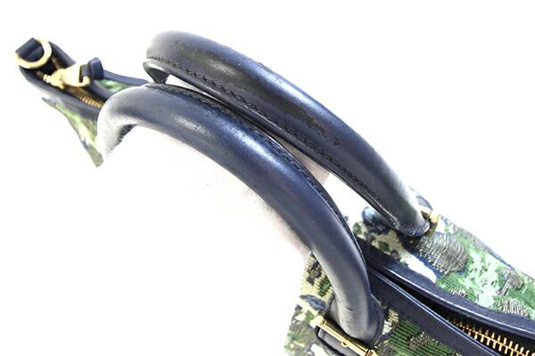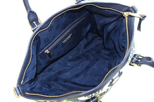 トリーバーチ2WAYハンドバッグネイビーグリーンジャガードレザー中古ショルダーバッグ斜め掛け肩掛けハンドトートレディースTORYBURCH