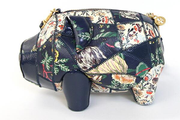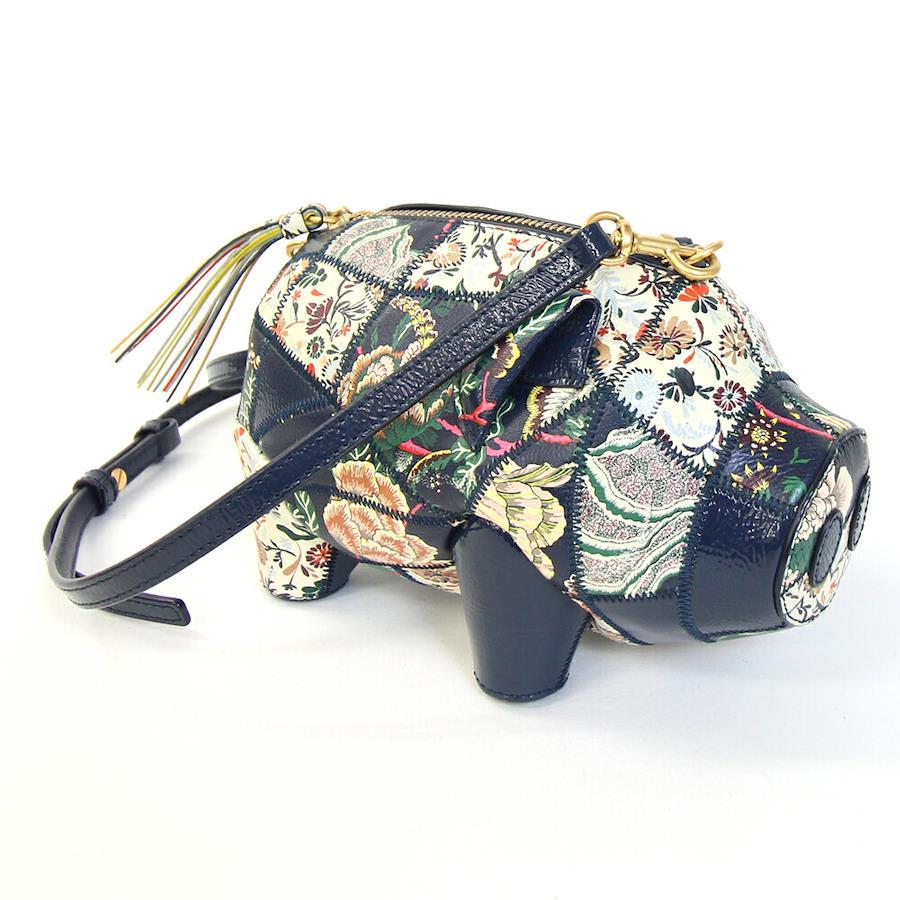 トリーバーチショルダーバッグ50614ネイビーマルチカラーレザー中古斜め掛けブタピッグミニバッグパッチワークレディースTORYBURCH