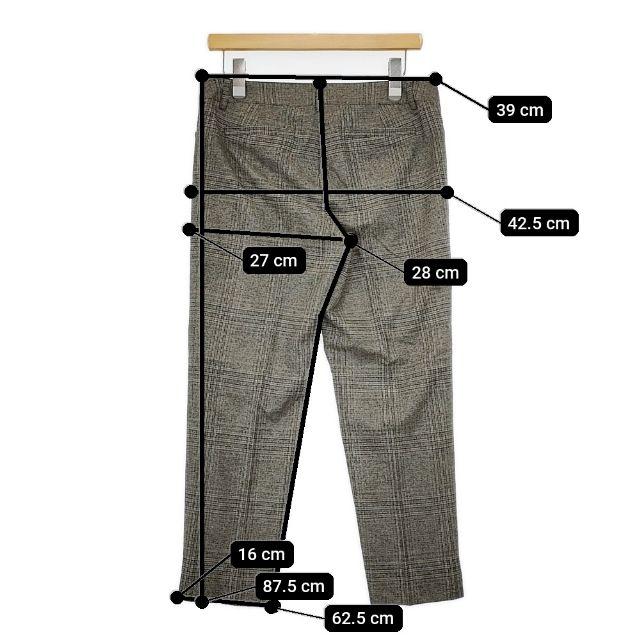 | 実寸サイズ | 総丈:約87.5cm ウエスト:約39cm 股上:約28cm 股下:約62.5cm ヒップ:約42.5cm ワタリ幅:約27cm 裾幅:約16cm ※採寸画像がある商品はハンガーに吊るした状態での計測のため、平置きでの採寸とは差が生じる場合がございます。平置きでの実寸サイズをご希望の場合は、ご購入前に必ずご質問ください。 ※記載以外のサイズが合わないことを理由とした返品はできませんので、 記載部分以外で実寸サイズの気になる箇所があれば必ず購入前にご質問ください。 |