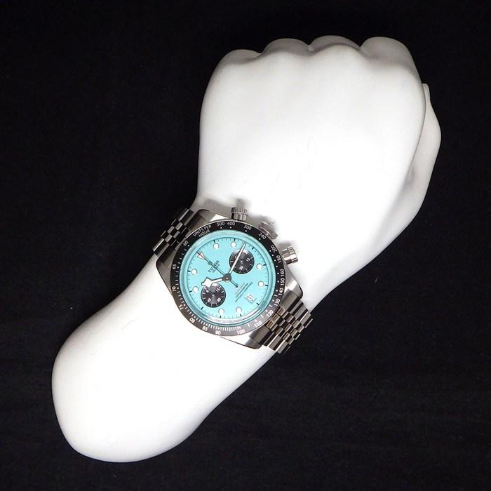 ■商品名TUDOR 腕時計 ブラックベイ クロノ 79360N ターコイズ文字盤 デイト クロノグラフ スモールセコンド 夜光針・インデックス SS 自動巻き 【箱・保付き】