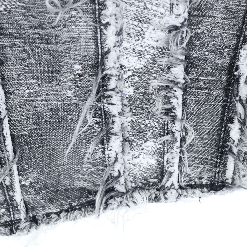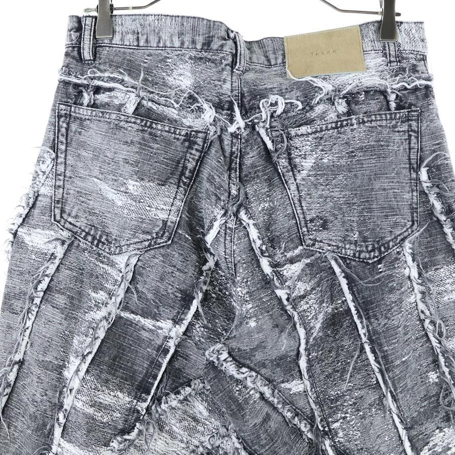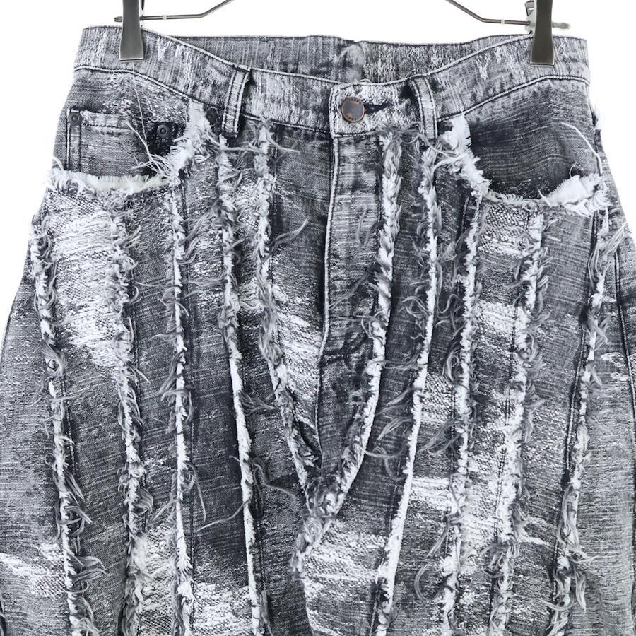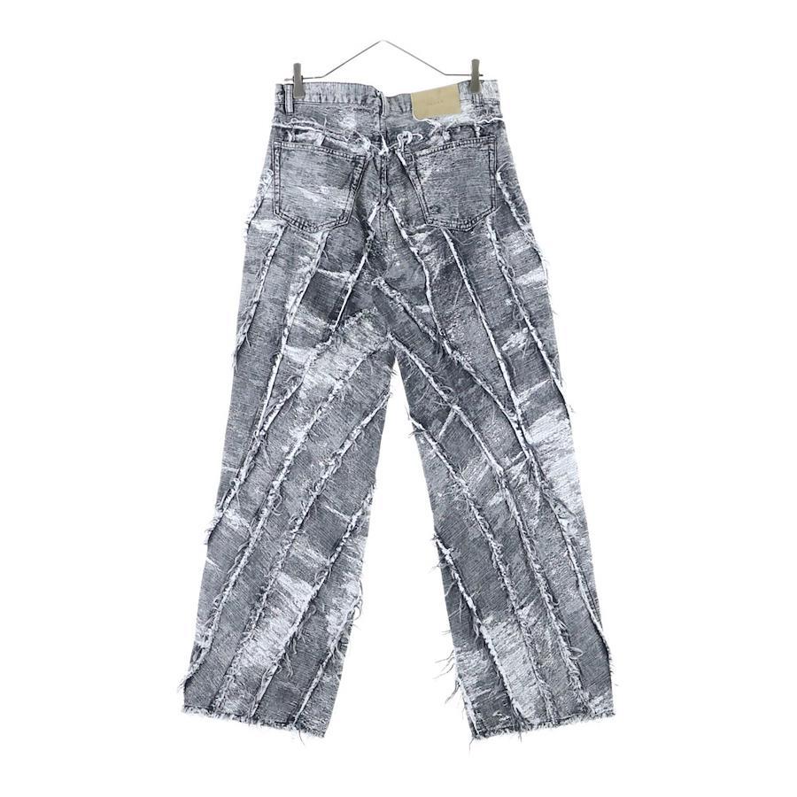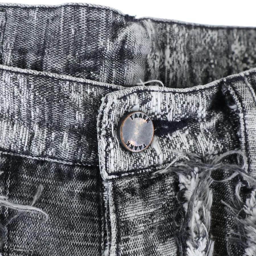 [モデル]24AW DENIM PANTS ダメージ加工 フリンジ ボタンフライ ワイド デニムパンツ ブラック/ホワイト TA24AW-PT050