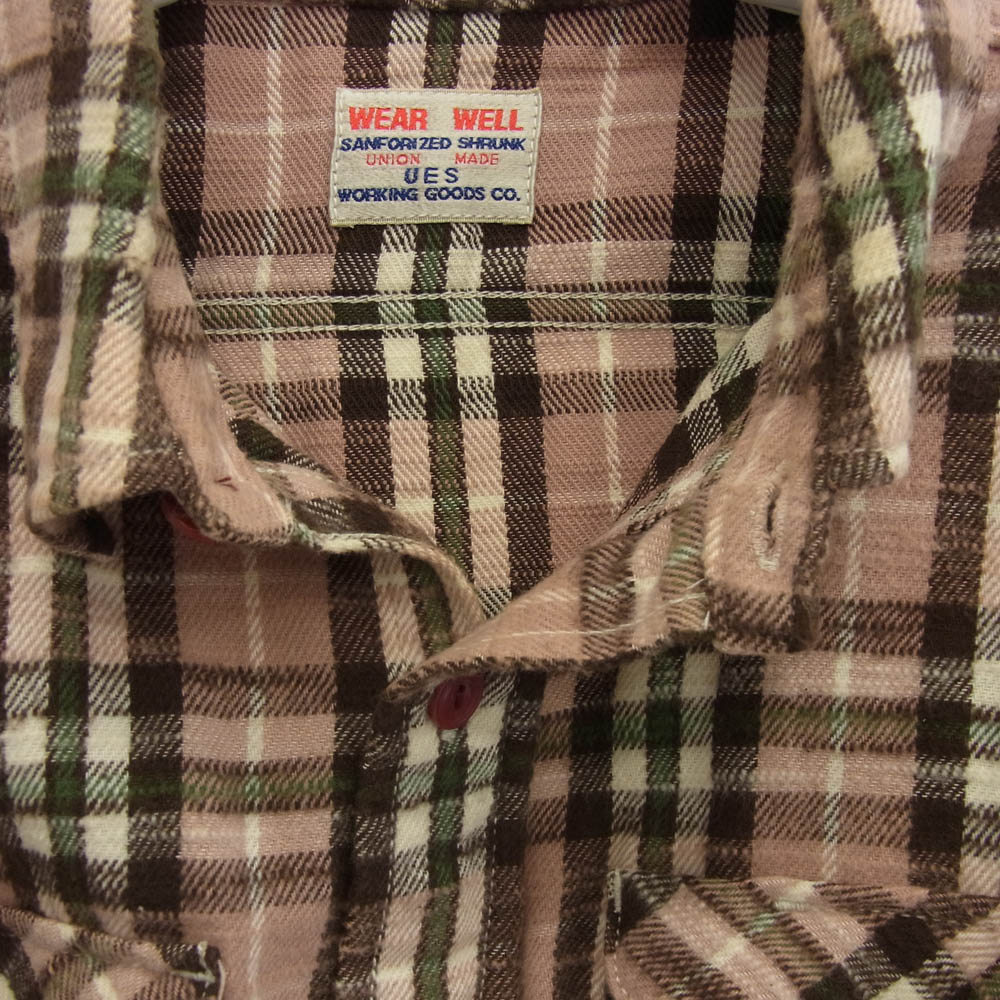 ピンク系【モデル】チェック柄 長袖 フランネル ワークシャツ