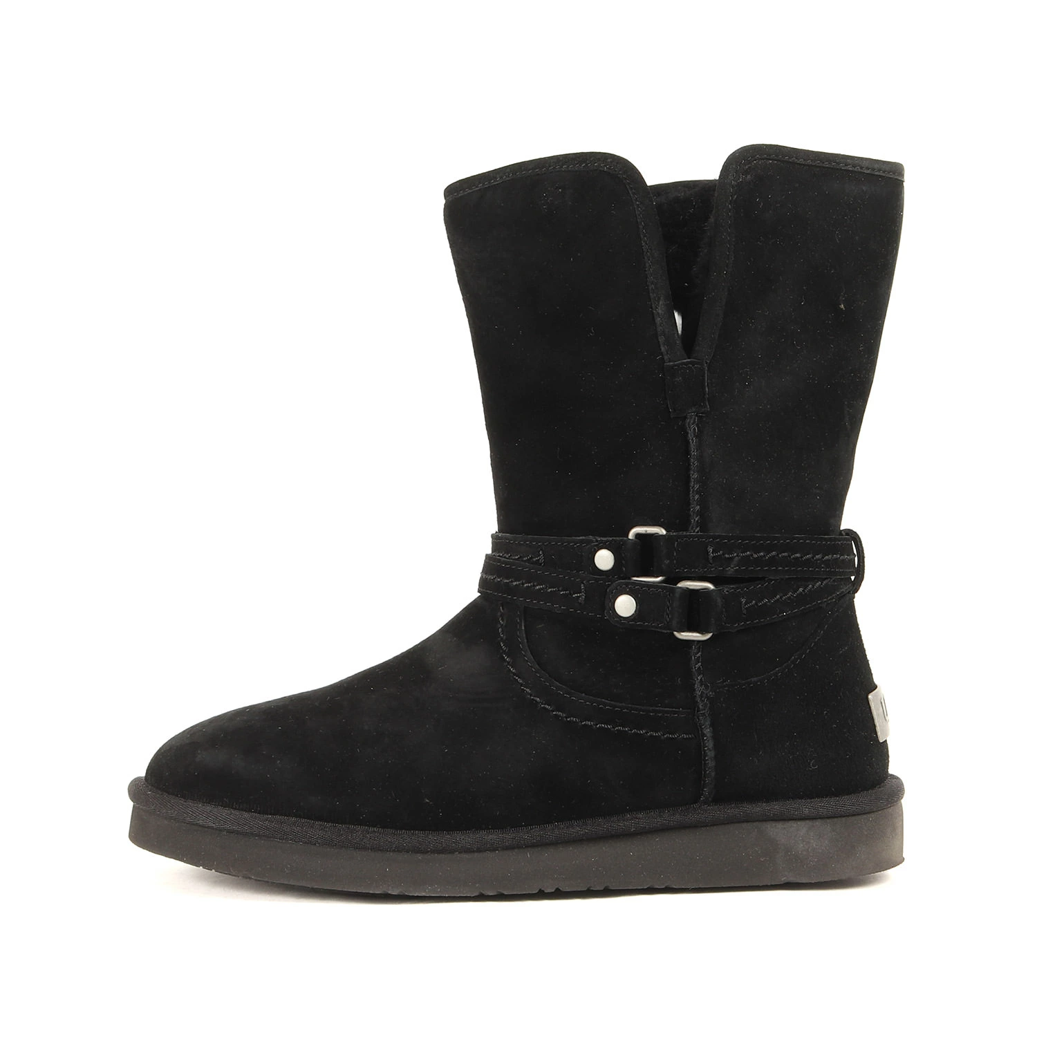 | 商品説明 | こちらは折り返し可能なアッパーに2本のストラップをあしらった”W PALISADE(パリセイド)”ムートンブーツになります。 |