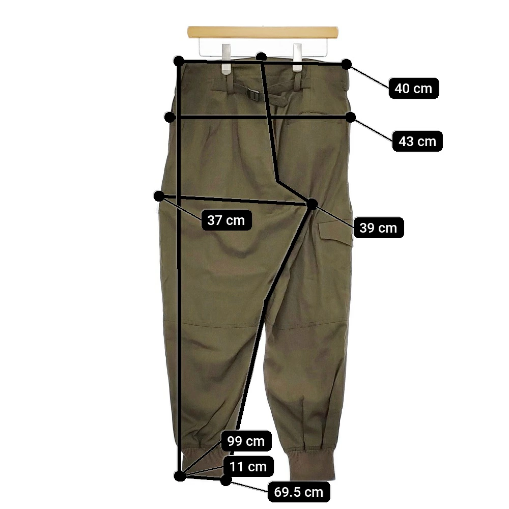 | 実寸サイズ | 総丈:約99cm ウエスト:約40cm 股上:約39cm 股下:約69.5cm ヒップ:約43cm ワタリ幅:約37cm 裾幅:約11cm ※記載以外のサイズが合わないことを理由とした返品はできませんので、 記載部分以外で実寸サイズの気になる箇所があれば必ず購入前にご質問ください。 |
