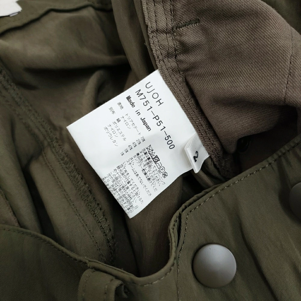 | 品質表示 | 表地:トリアセテート73%、ナイロン27% 別布:綿47%、ポリエステル47%、ナイロン5%、ポリウレタン1% |