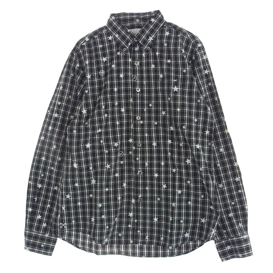 ブラック系 x ホワイト系【モデル】STAR PRINT B.D SHIRT スタープリント ボタンダウン 長袖シャツ