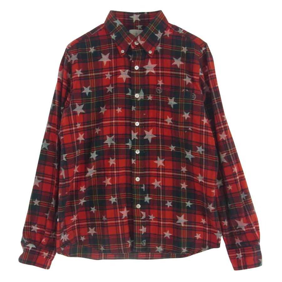 レッド系【モデル】ENGLATAILOR by GB 長袖シャツ コットン スター チェック 長袖 シャツ