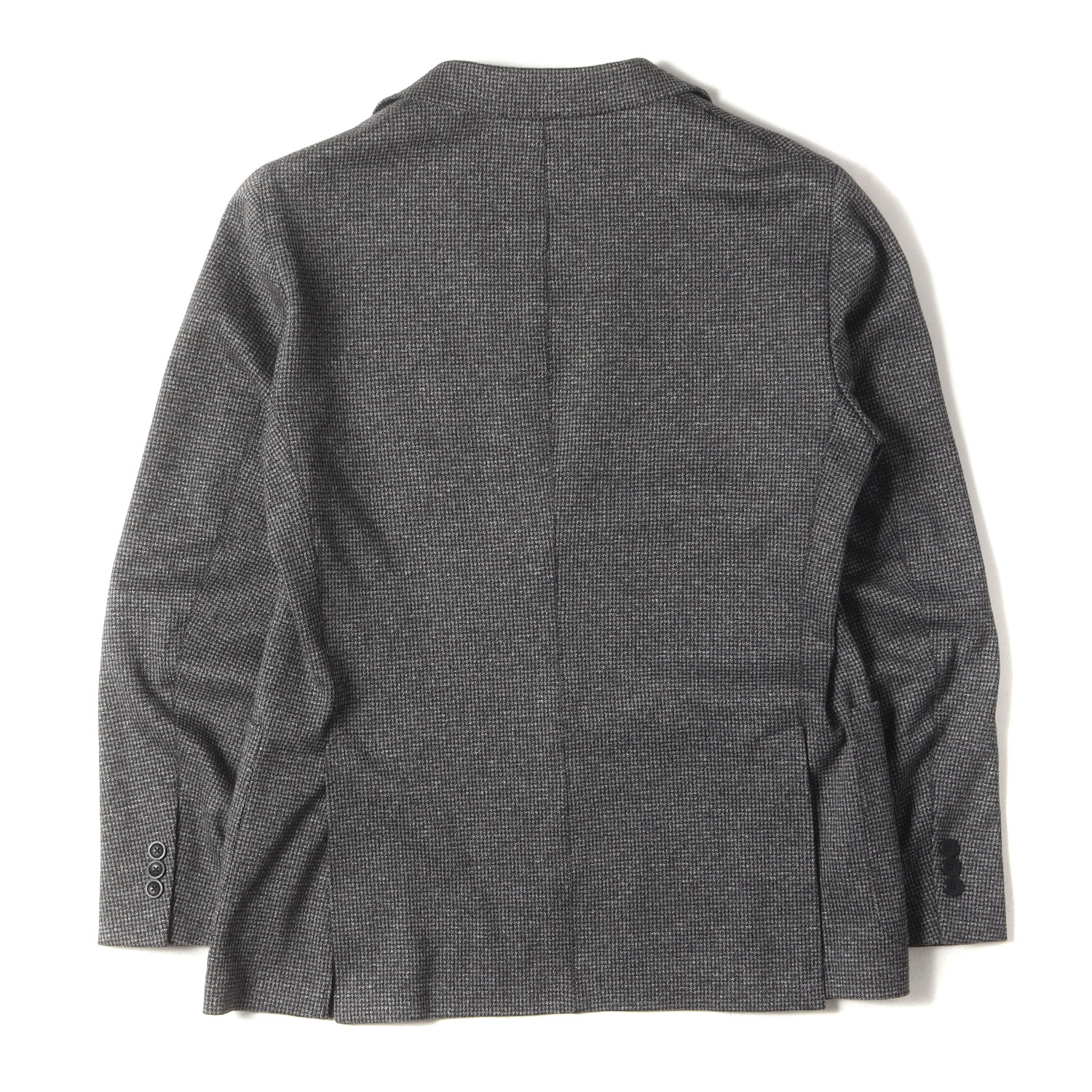 | 商品説明 | ハウンドトゥース柄があしらわれたコットンポリエステル混紡生地を使用し、背抜き裏地、袖口開き見せ4つボタン、サイドベンツ仕様で仕上げられた2Bテーラードジャケットです。 |