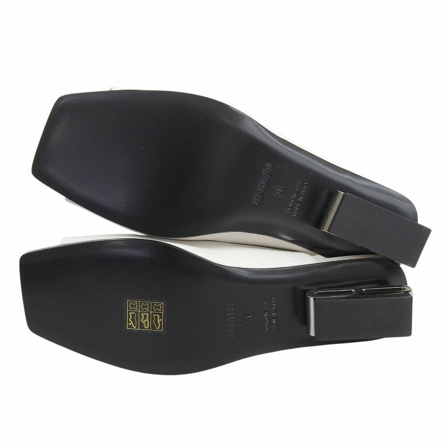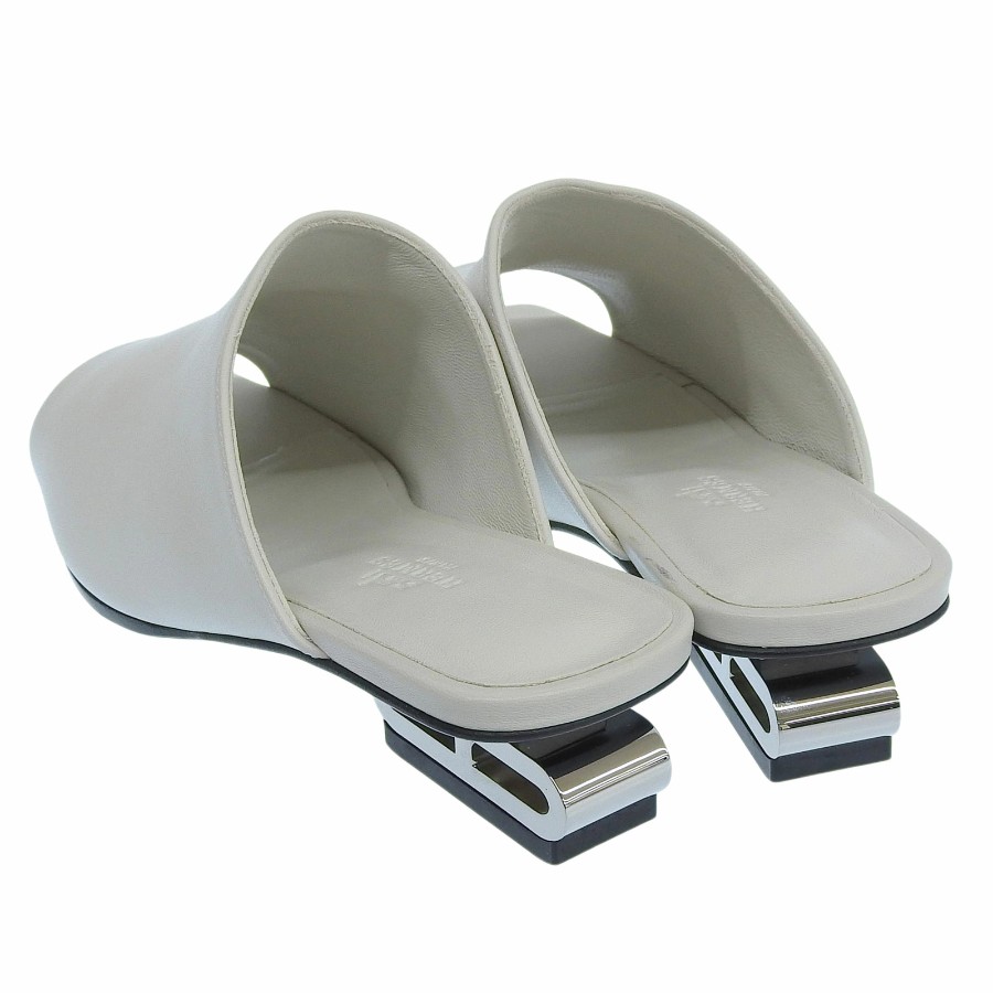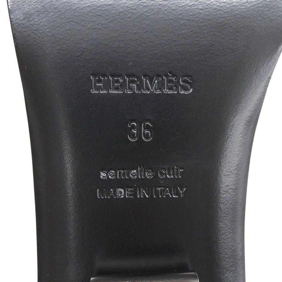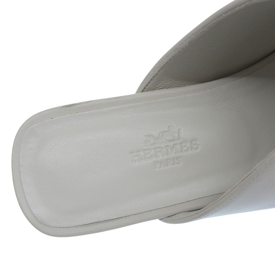 Unused ▲HERMES IDOLE Chaine d'Ancre motif leather sandals/mules, light gray, size 36, made in Italy, women's [Used]