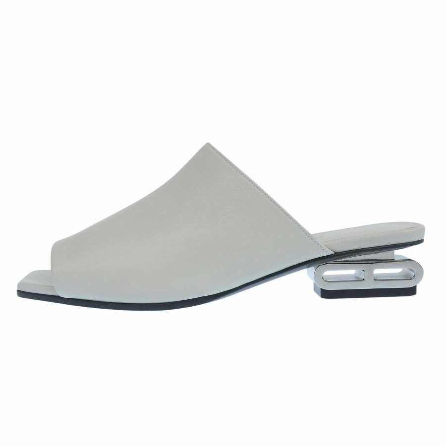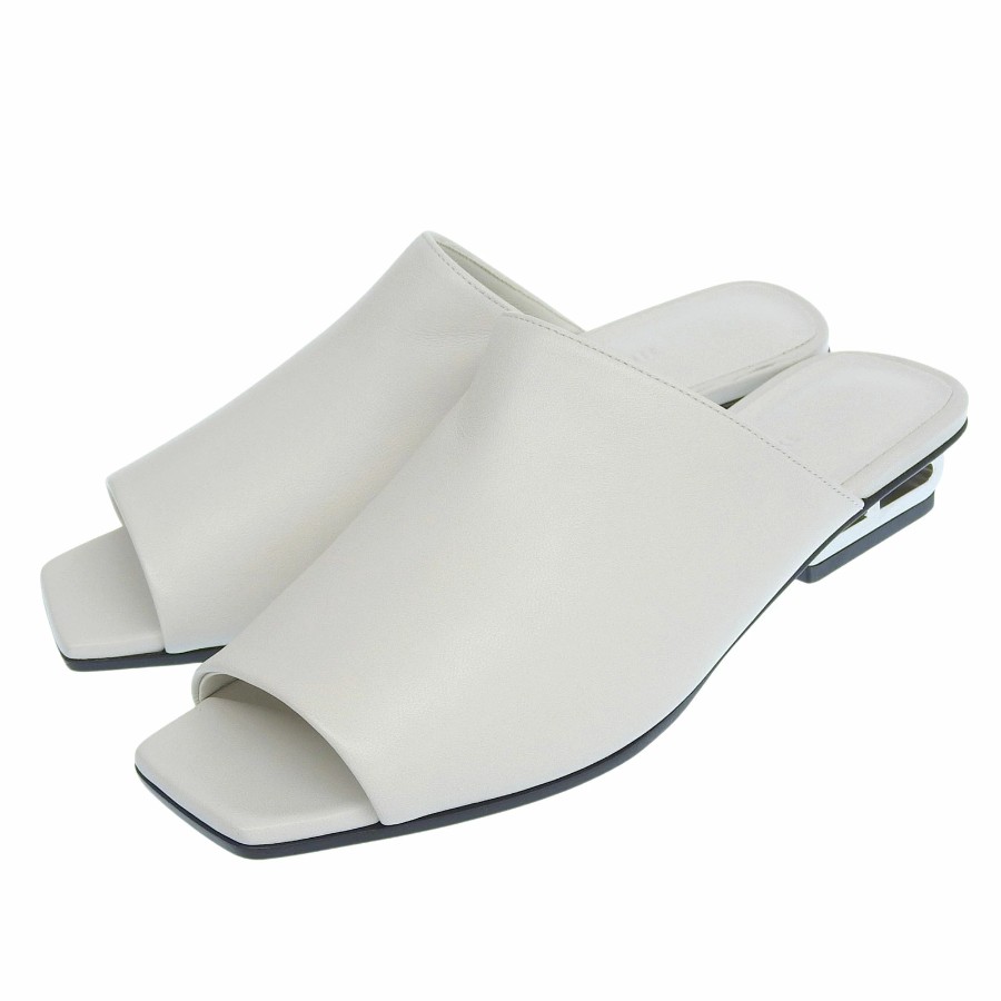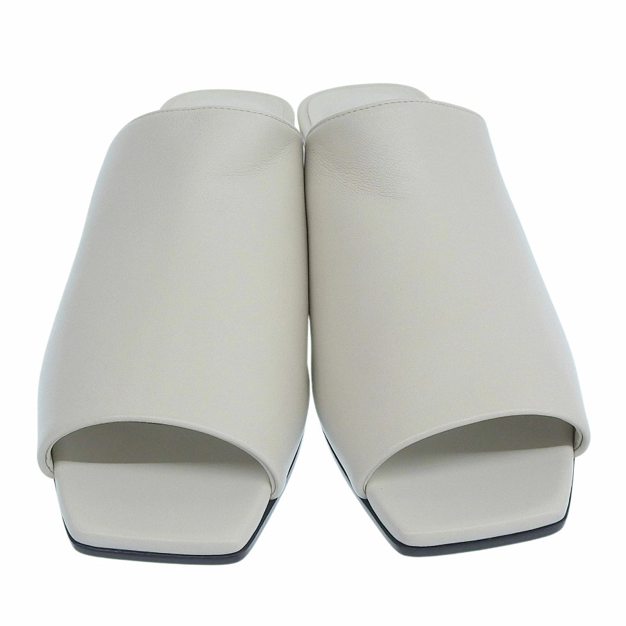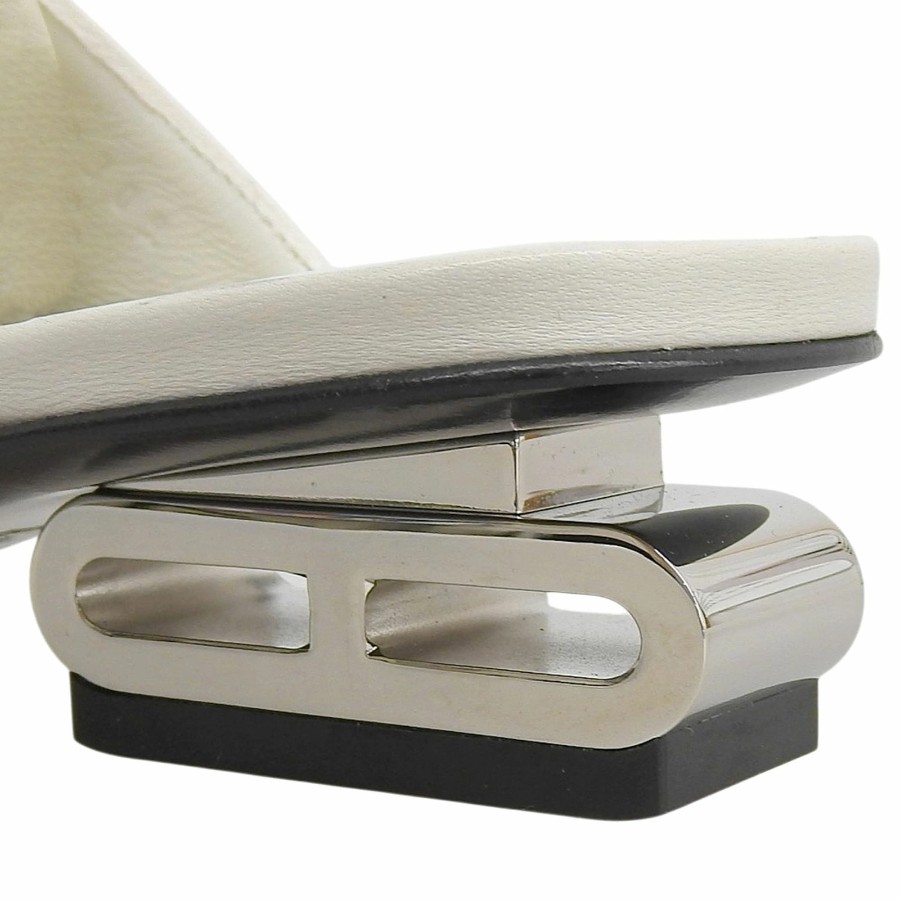 Unused ▲HERMES IDOLE Chaine d'Ancre motif leather sandals/mules, light gray, size 36, made in Italy, women's [Used]