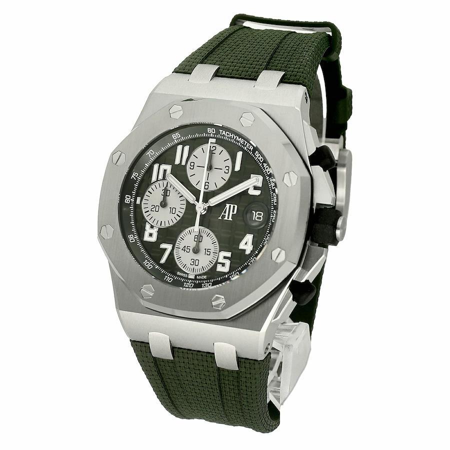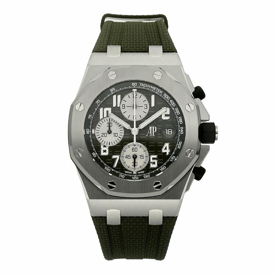 --------【商品スペック】--------お問合せコード:26238TI.OO.A056CA.01ブランド:オーデマ・ピゲシリーズ:ロイヤルオーク オフショアケース素材:チタンベルト素材:ラバーダイアルカラー:カーキムーブメント:自動巻(Cal.4404)ケースサイズ:42mm(リューズ除く)防水:100mガラス:サファイアガラス仕様:日付表示、フライバッククロノグラフ、スモールセコンド付属品:純正BOX、国際保証書(2021年)、替えベルト保証:当店購入日より1年保証状態:使用形跡のない未使用品です