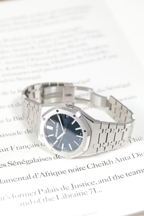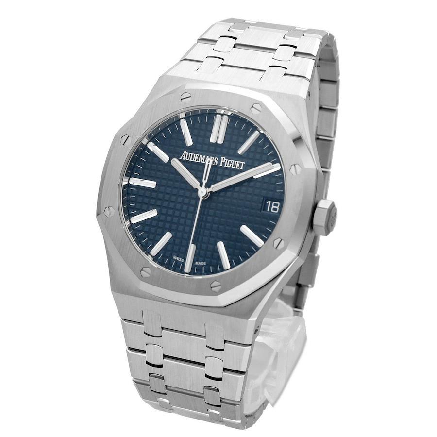 --------【商品スペック】--------お問合せコード:15510ST.OO.1320ST.06ブランド:オーデマ・ピゲシリーズ:ロイヤルオークケース素材:ステンレススチールベルト素材:ステンレススチールダイアルカラー:ブルームーブメント:自動巻(Cal.4302)ケースサイズ:41mm(リューズ除く)防水:50mガラス:サファイアガラス仕様:日付表示、バックスケルトン、3針付属品:純正BOX、国際保証書(2024年)保証:当店購入日より1年保証