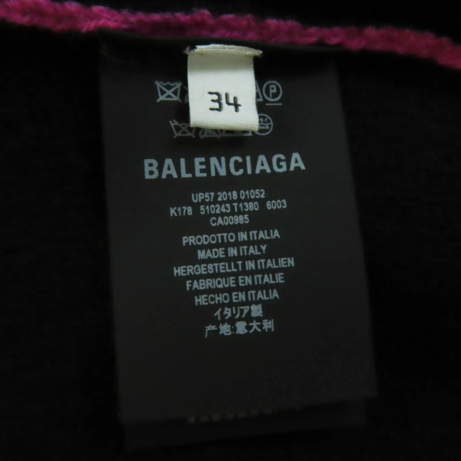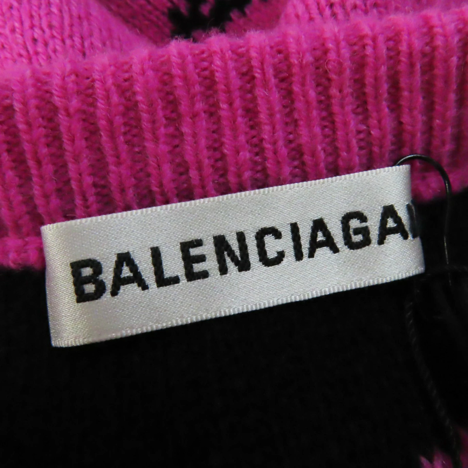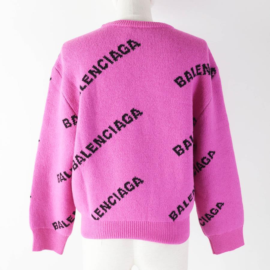Unused BALENCIAGA 510243 Virgin Wool Jacquard Logo Long Sleeve Knit Sweater in Pink and Black, Size 34, Made in Italy, Authentic, Women's [Pre-owned]