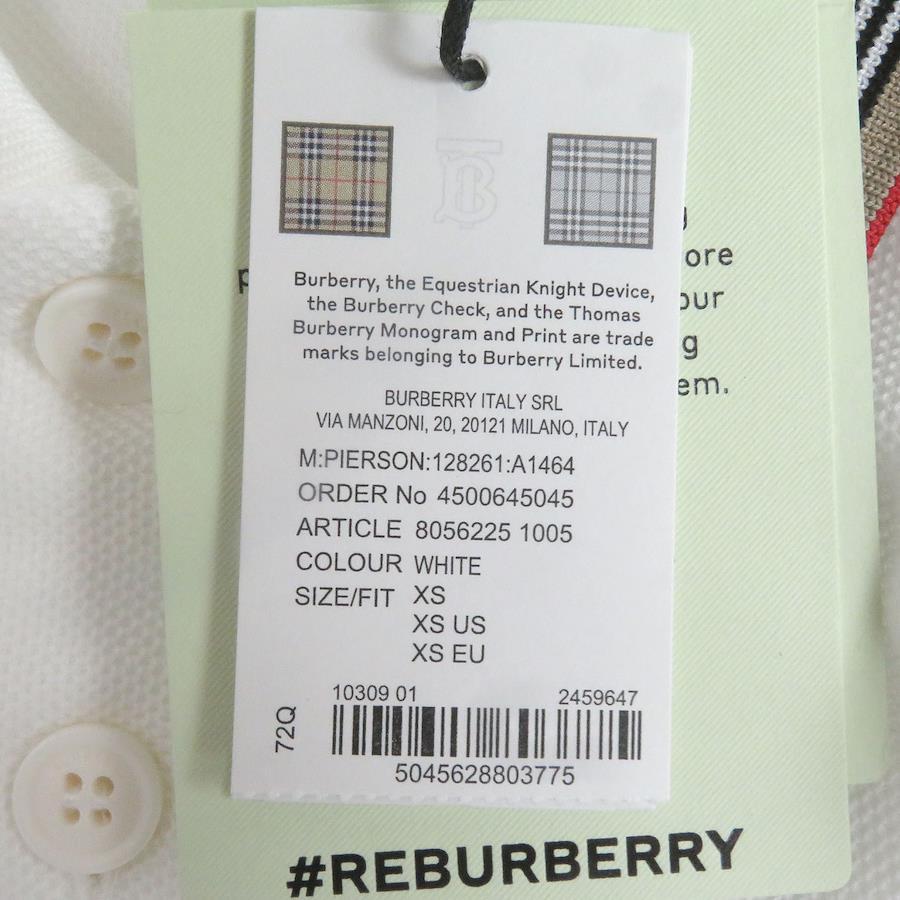 Unused BURBERRY 8056225 100% Cotton Short Sleeve Polo Shirt with Embroidered TB Logo, White, Size XS, Authentic, Men's [Pre-owned]