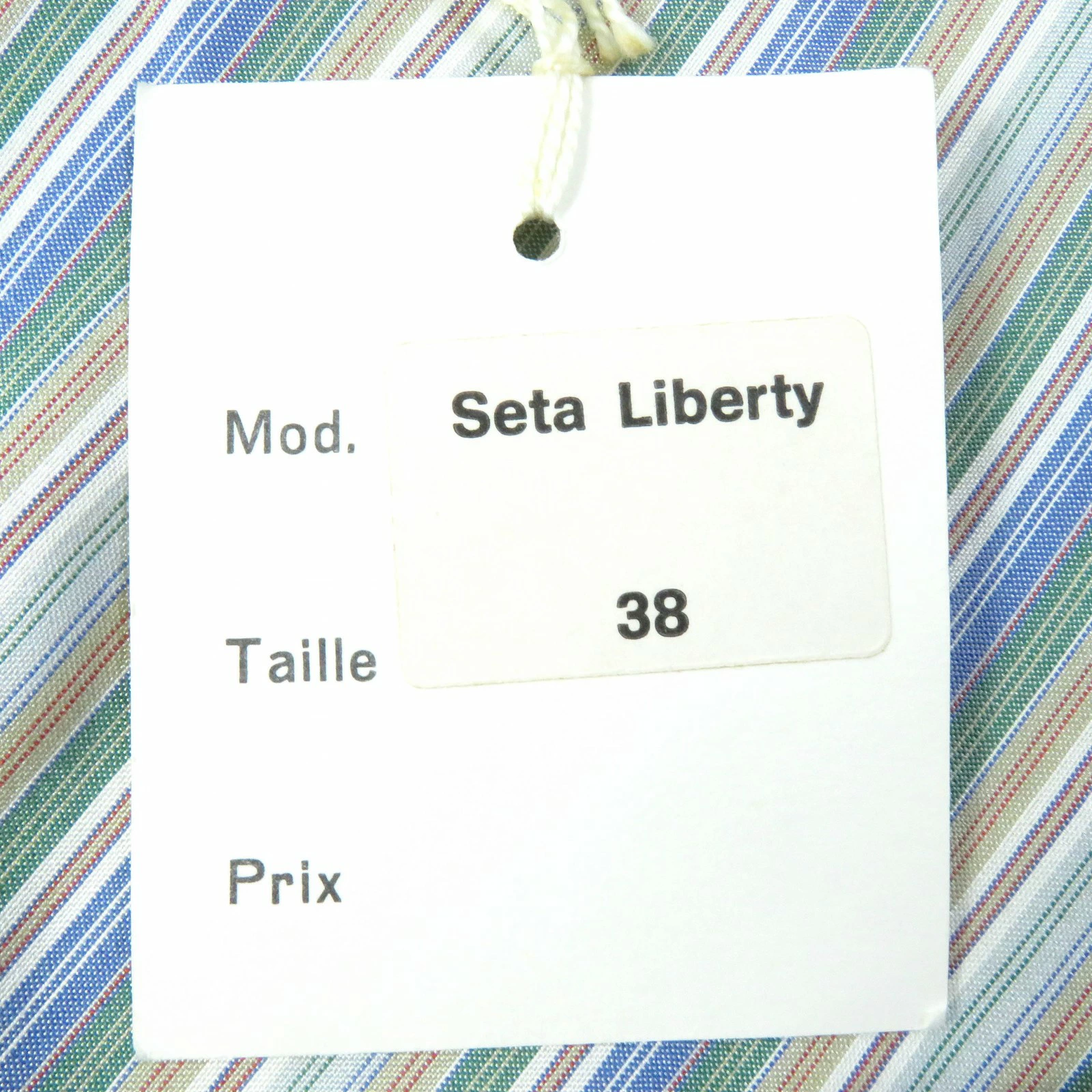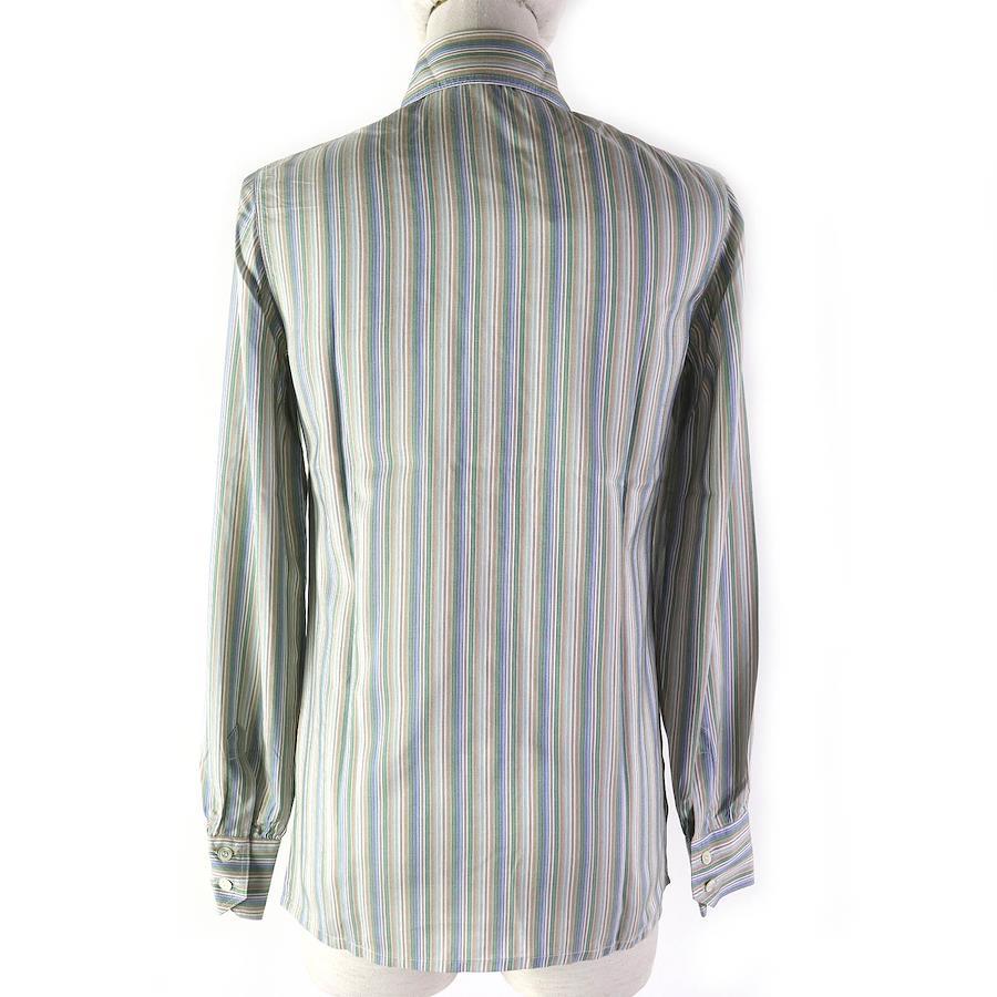 Unused Celine 100% Silk Rare Vintage Celine Horse-Drawn Carriage Embroidery Striped Long Sleeve Shirt, Multicolor, Size 38, Made in Italy, Authentic, Women's [Pre-owned]
