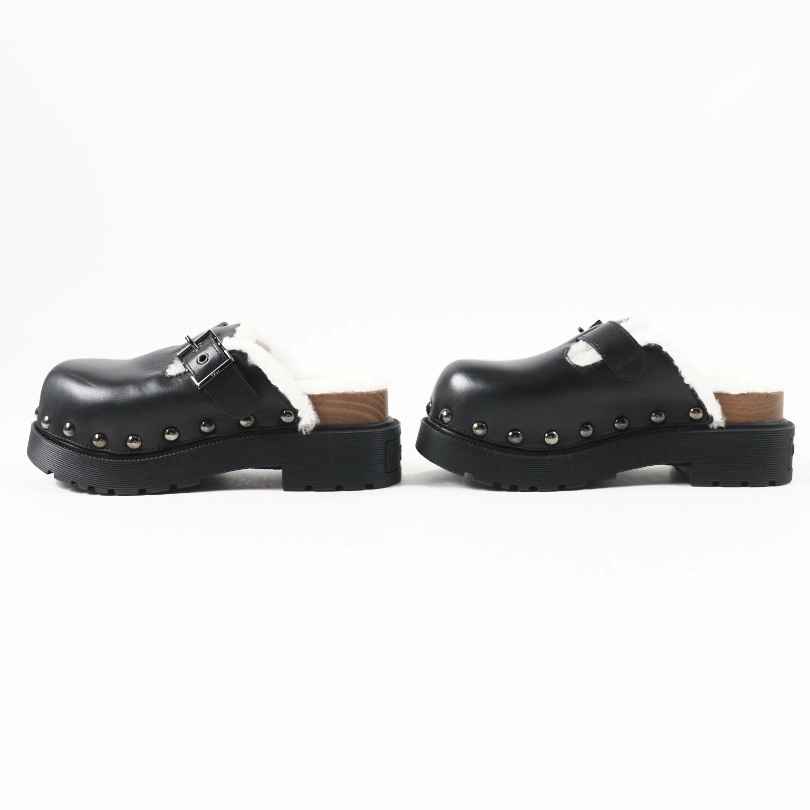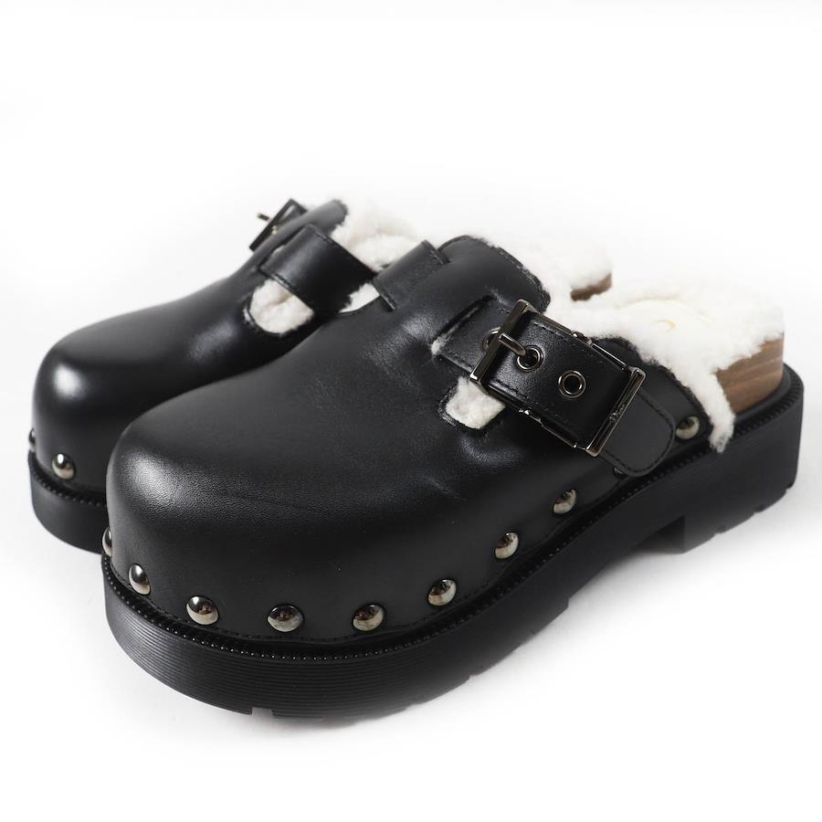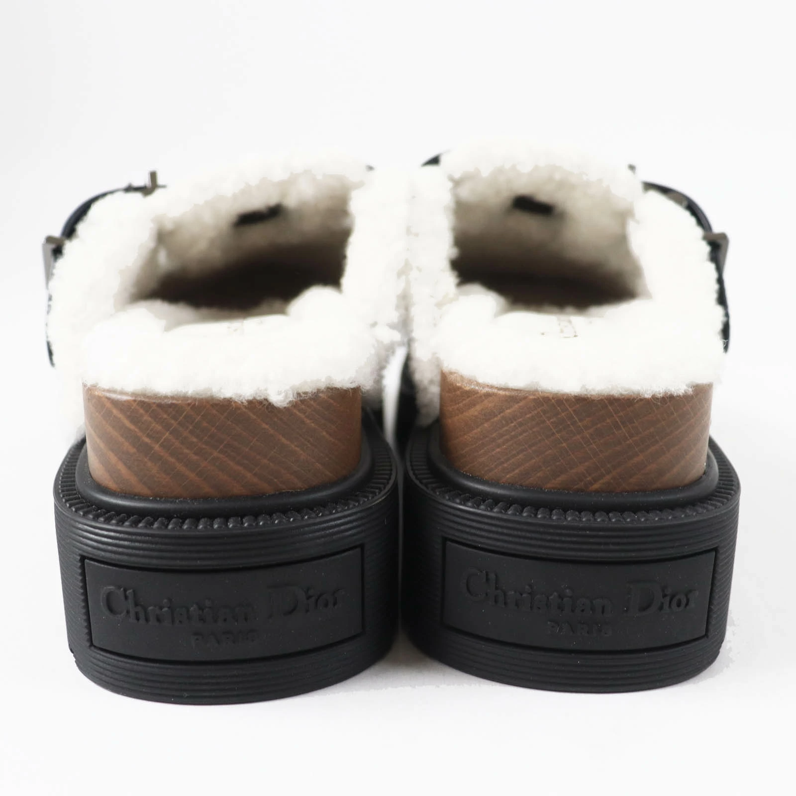 Unused Christian Dior DiorQuake Leather Mouton Clog/Sandal in Black and White, Size 34, Made in Italy, Women's [Pre-owned]