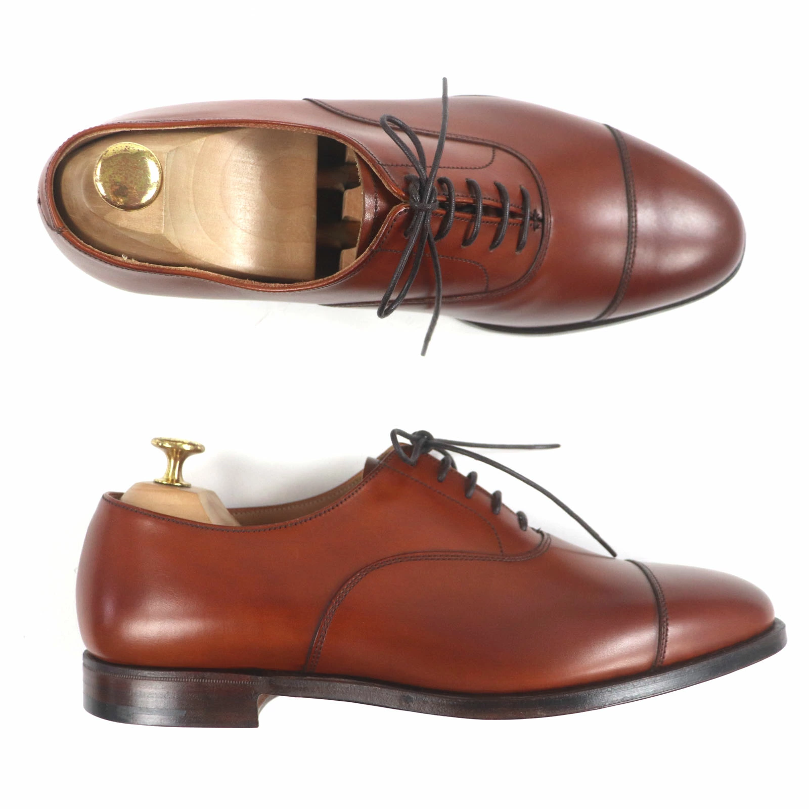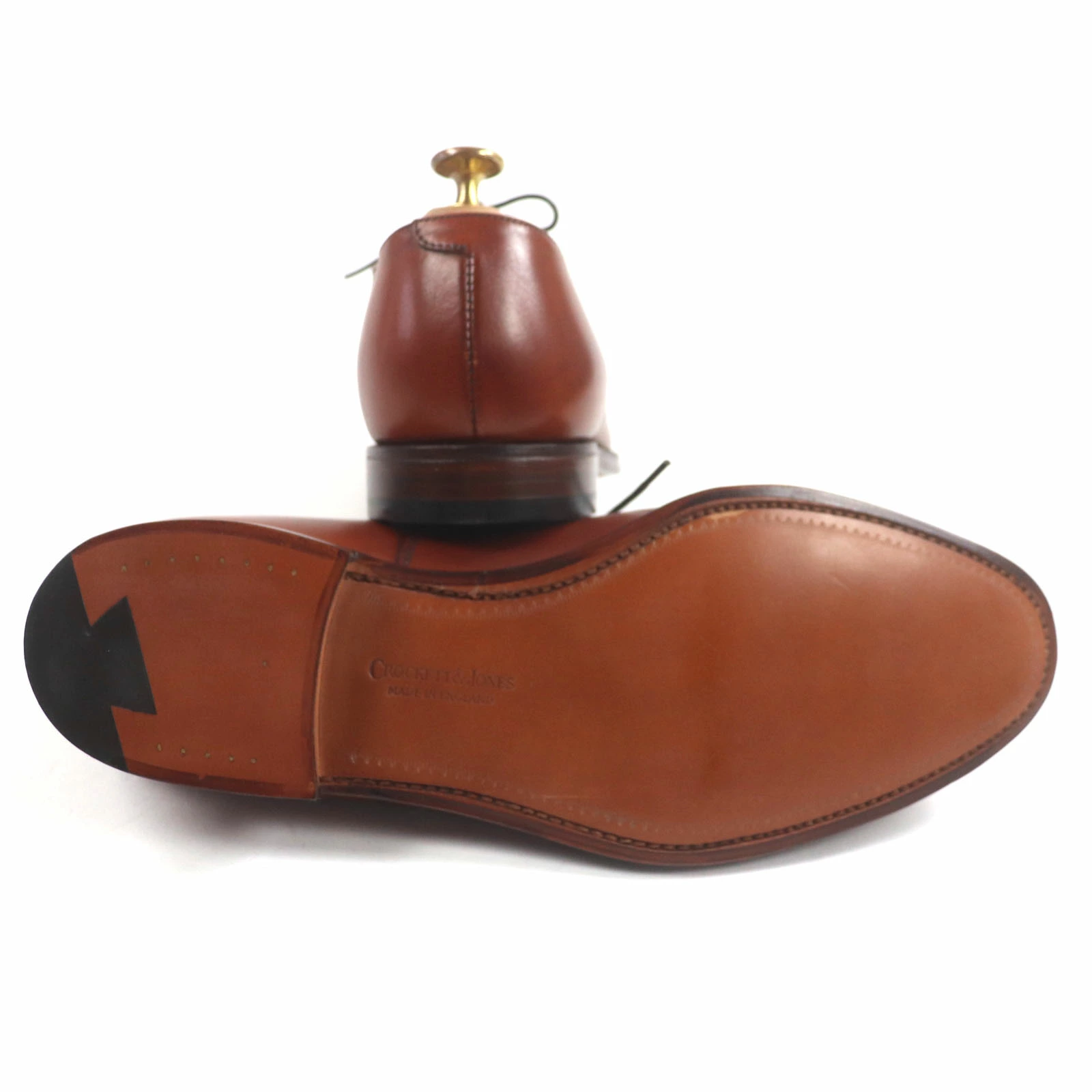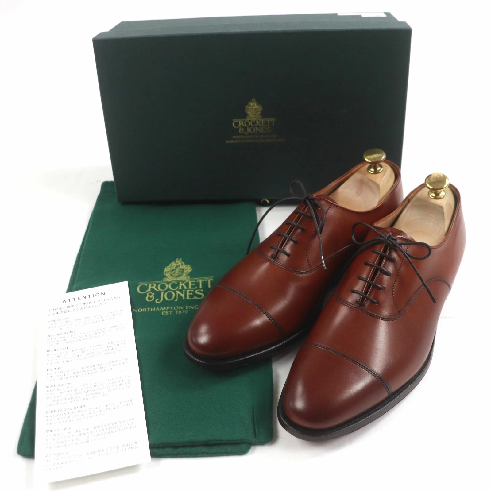 Unused CROCKETT & JONES CONNAUGHT 236 last leather straight-tip lace-up business shoes, brown, size 7.5, made in England, men's, with box and dust bag.