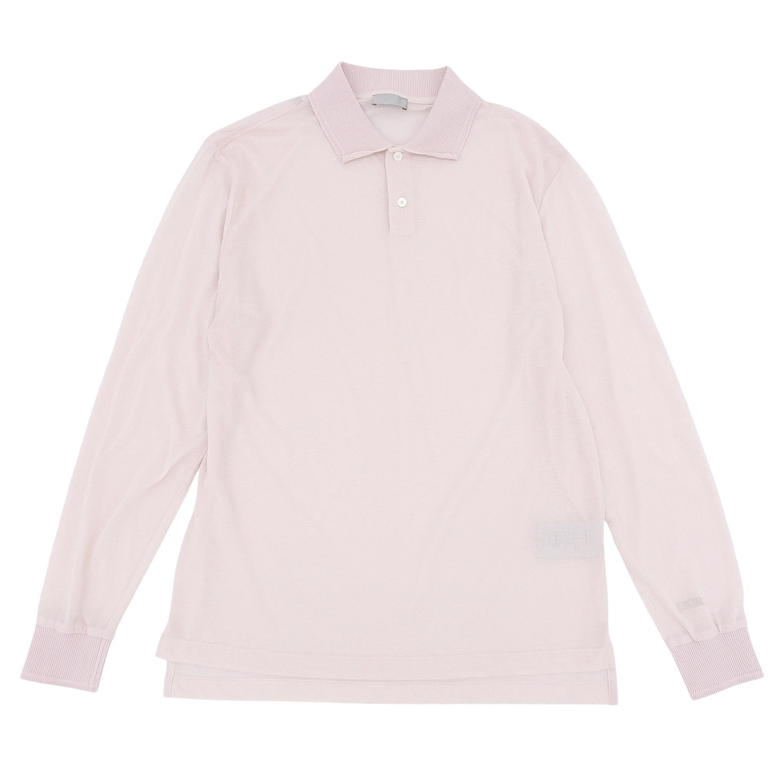 Unused DIOR Homme 243J831A0800 Long Sleeve Knit Polo Shirt with Logo Embroidery on Cuffs and Logo Buttons, Pink, Size Small, Made in Italy, Authentic, Men's [Pre-owned]