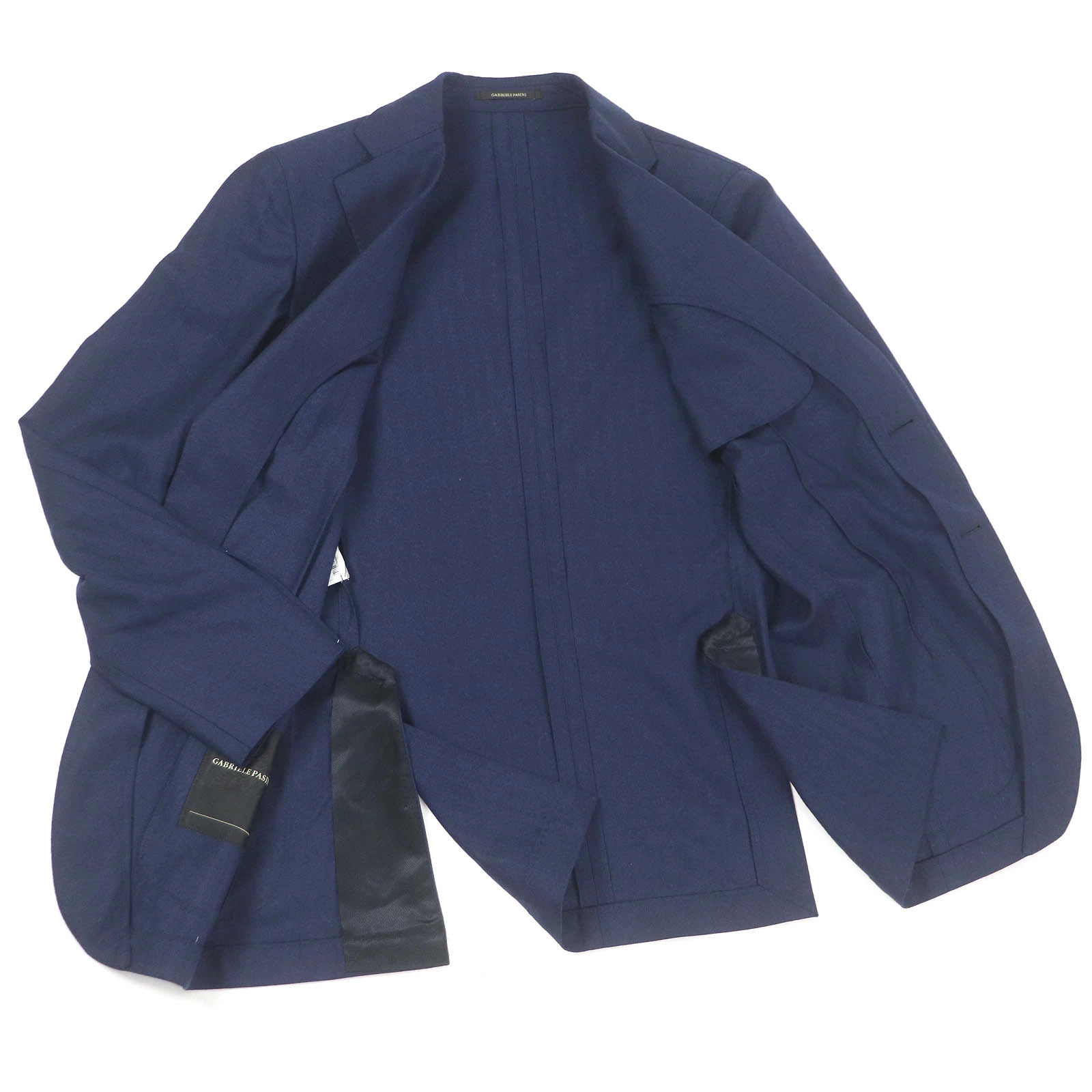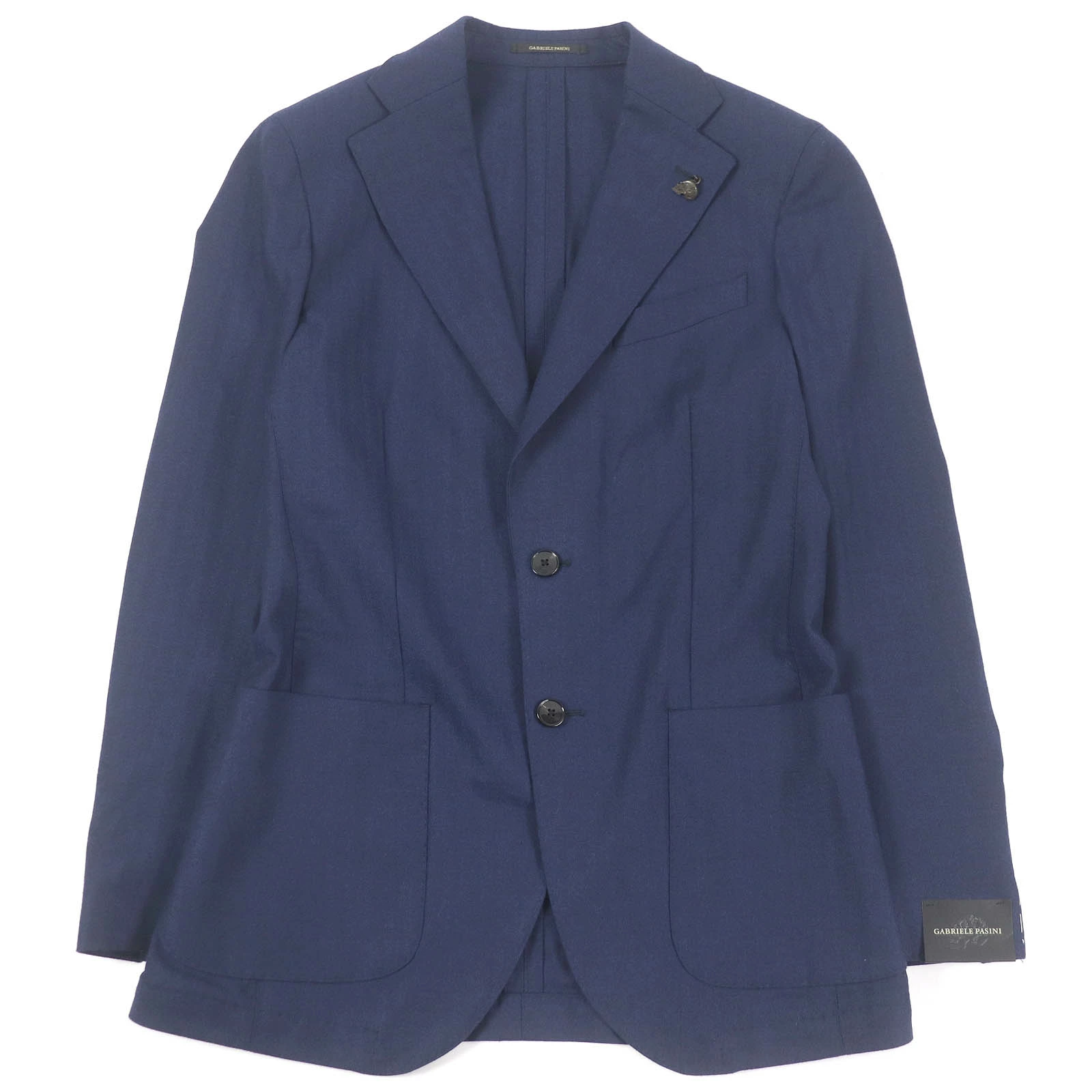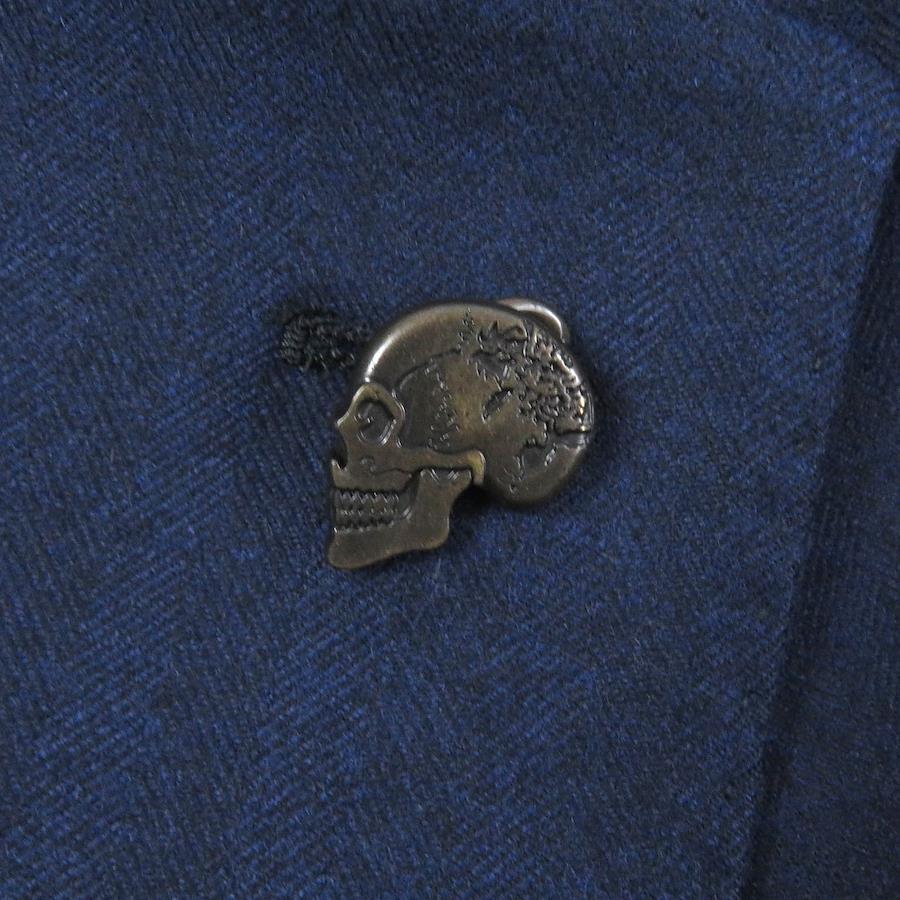Unused Gabriele Pasini wool skull lapel pin. Single-breasted unconstructed jacket, tailored jacket, navy, size 44, with hanger. Authentic, made in Italy. Men's. [Pre-owned]