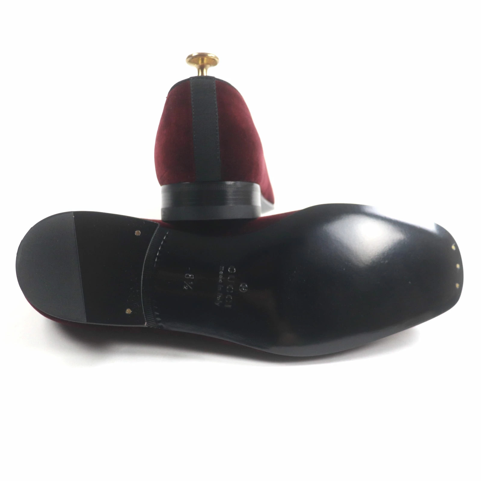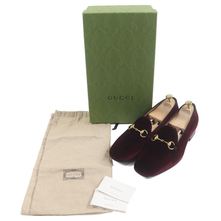 Unused GUCCI 718888 Velour Horsebit Leather Loafers, Bordeaux, Gold Hardware, Size 8.5, Made in Italy, with Box and Dust Bag. Pre-owned.