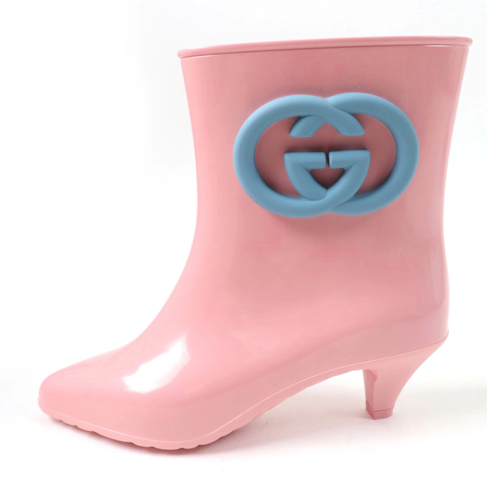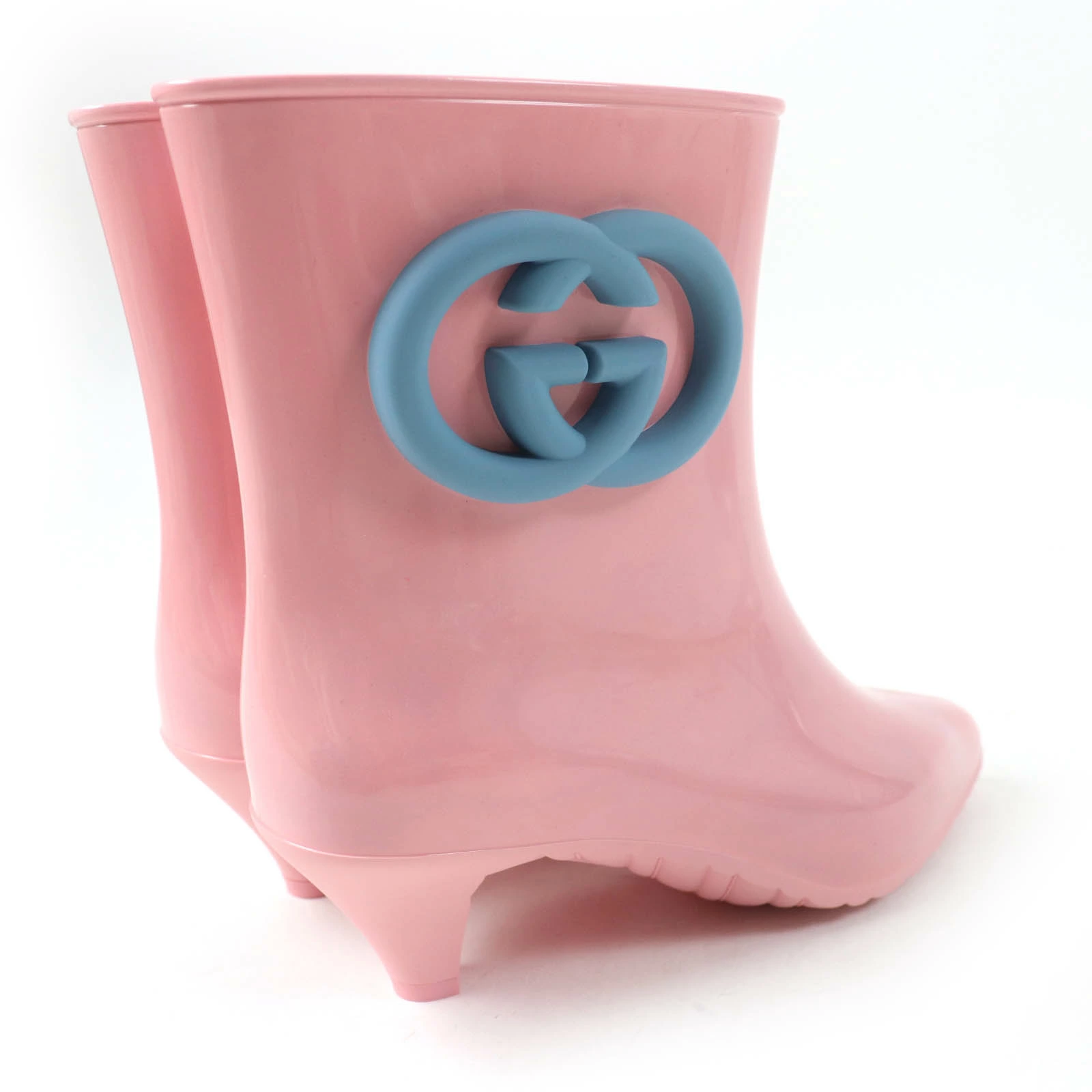 Unused GUCCI 724458 Interlocking G Rubber Rain Boots, Pink, Size 36, Comes with Dust Bag, Made in Italy, Women's [Pre-owned]