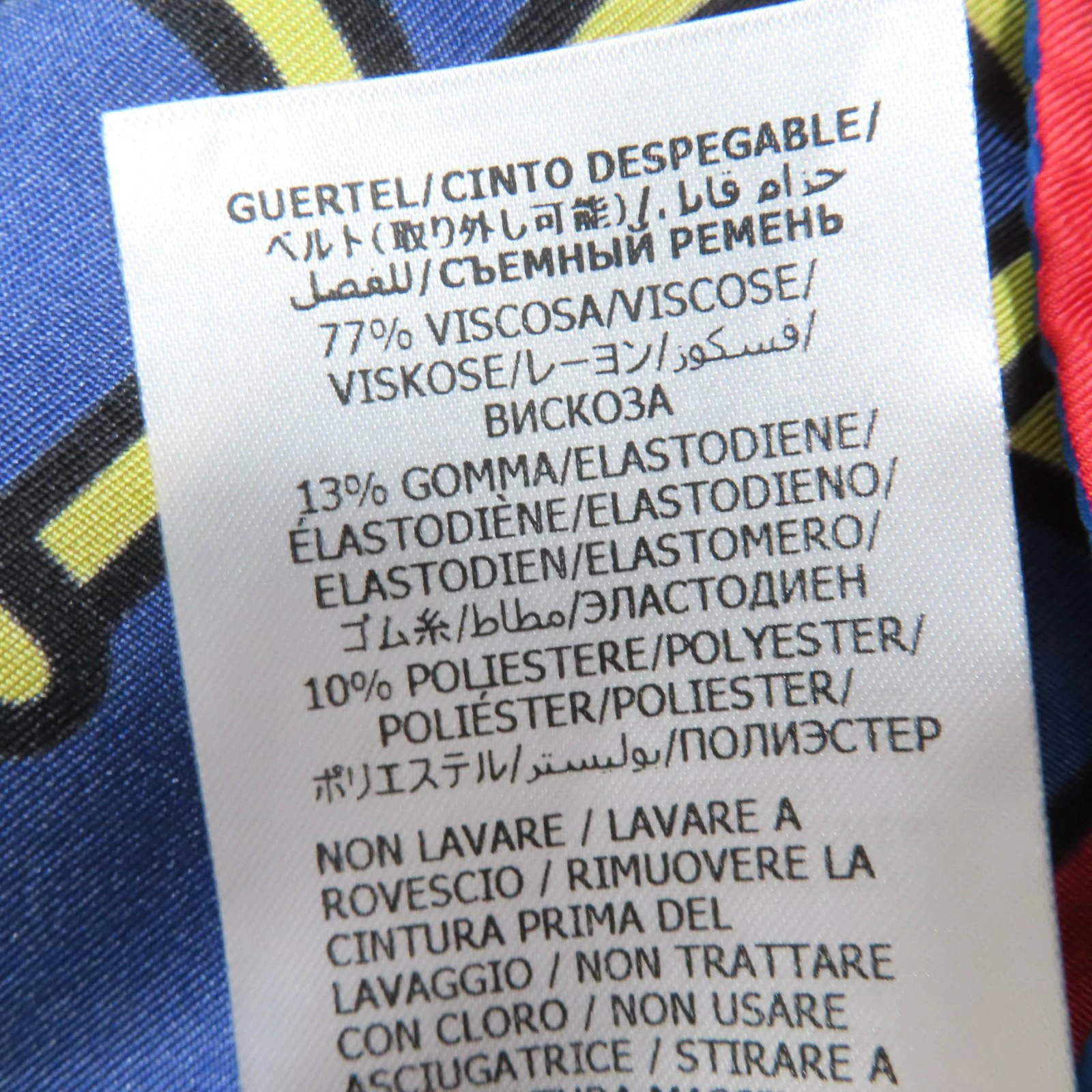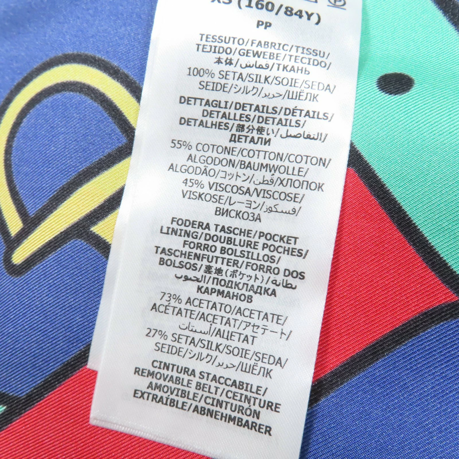 | 素材 (material) | 本体:シルク100% 一部:コットン55% :レーヨン45% 裏地:アセテート73% :シルク27% 一部:レーヨン77% :ゴム13% :ポリエステル10% | ||||||||||||||||