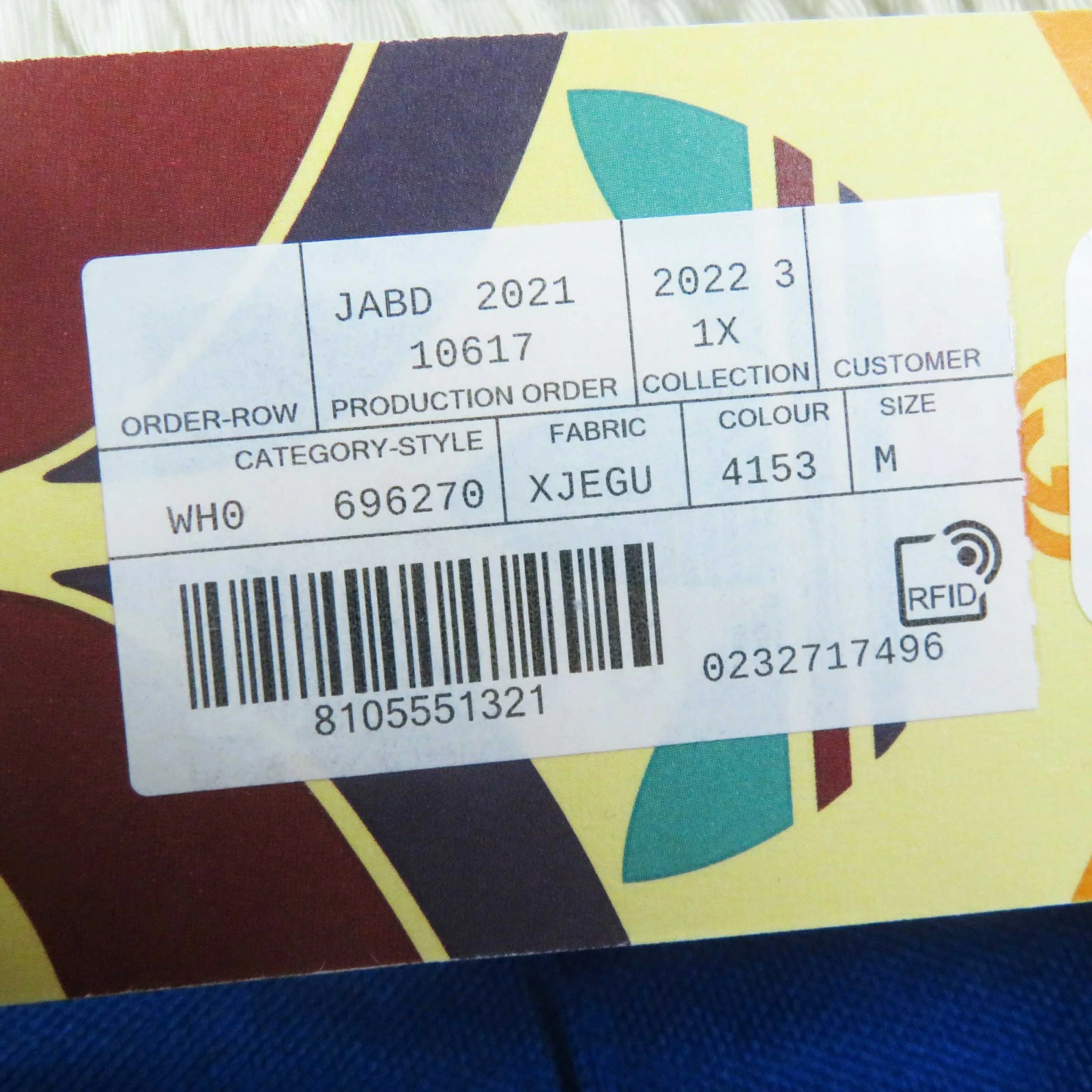 | 素材 (material) | 表地:ポリエステル55% :コットン45% 一部:ポリエステル100% :レーヨン62% :コットン38% | ||||||||||||||||