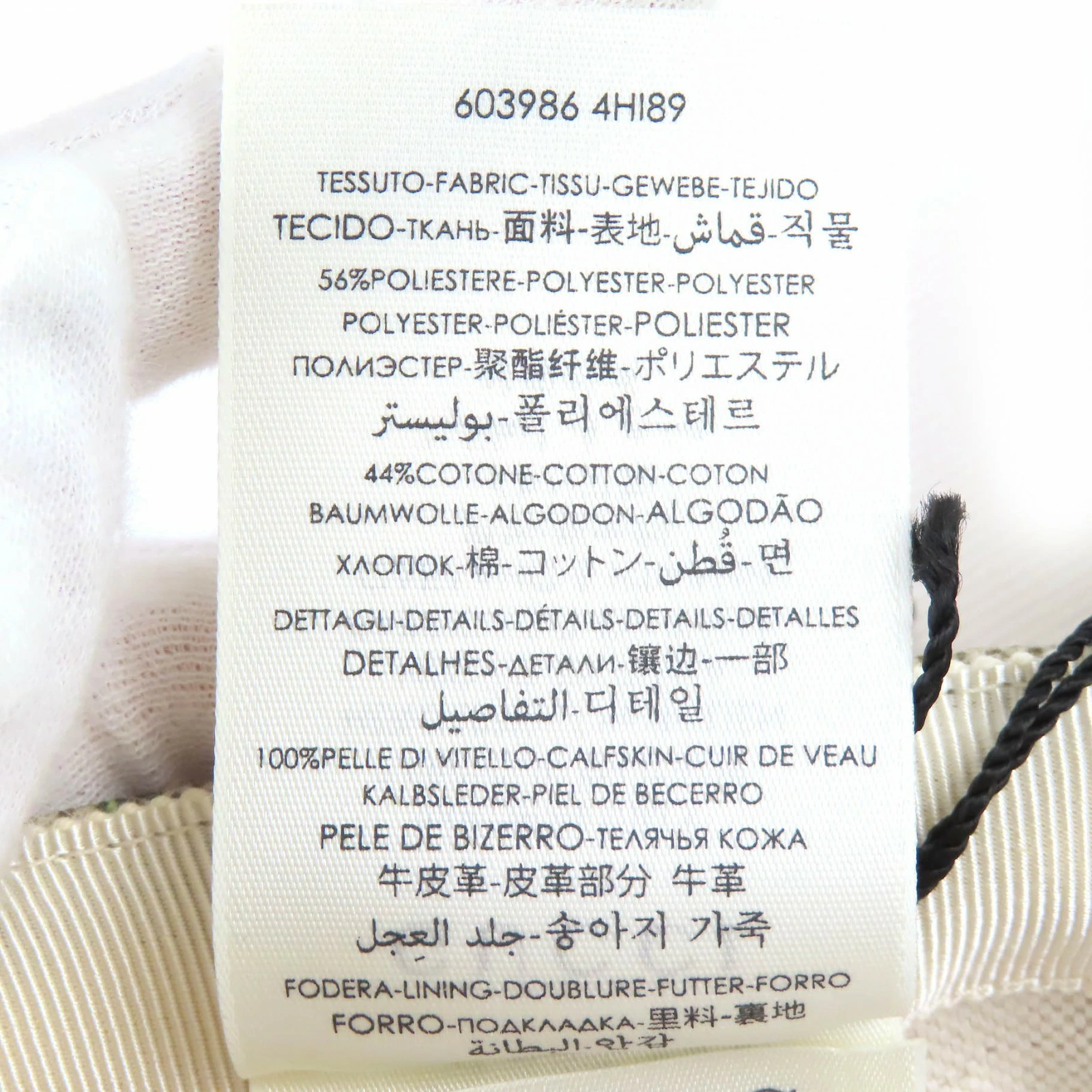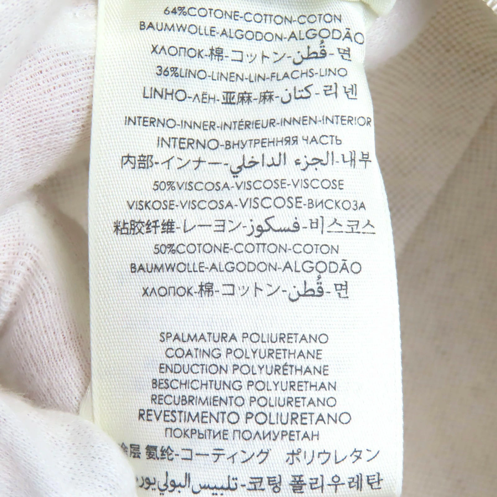 | 素材 (material) | 表地:ポリエステル56% :コットン44% 皮革部分:牛革 裏地:コットン64% :リネン36% 一部:レーヨン :コットン | ||||||||||||||||