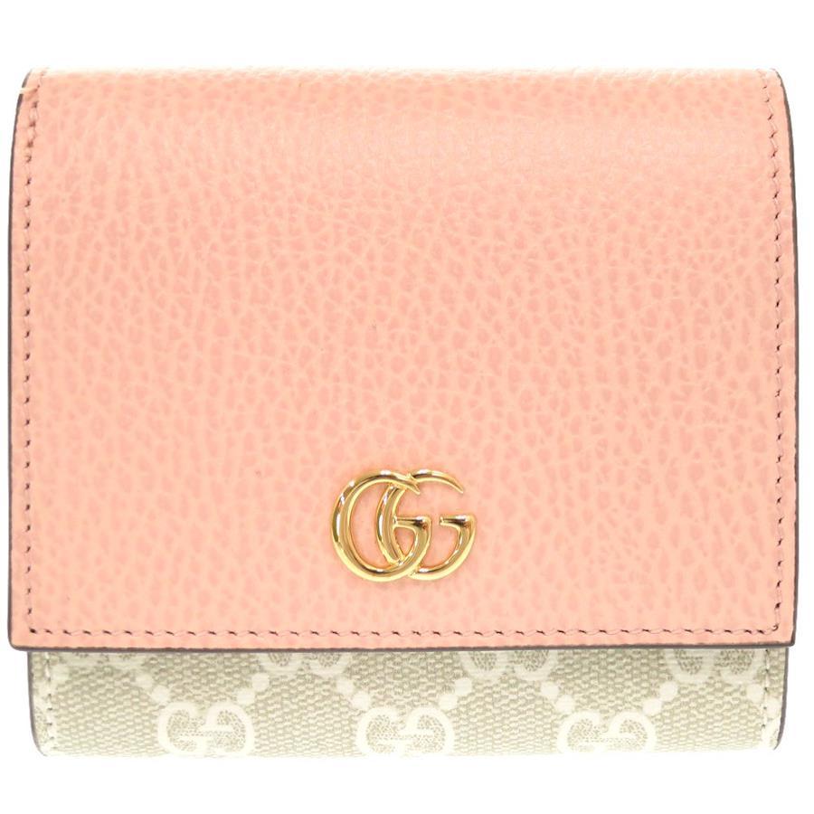 [管理番号]7I1200AA5D1[ブランド]グッチ(GUCCI)[型番]598587[対象]レディース[カラー]ベージュ/ピンク[金具]ゴールド[モデル]コンパクトウォレット[ライン]GGマーモント[生産国]イタリア[サイズ]W約11cm x H約10cmx D約2.2cm[素材]GGスプリーム レザー GGスプリーム[仕様]開閉式:スナップボタン内側:カードポケット x 7、札入れ x 1、ファスナー開閉式小銭入れ x 1[付属品]保存箱,保存袋