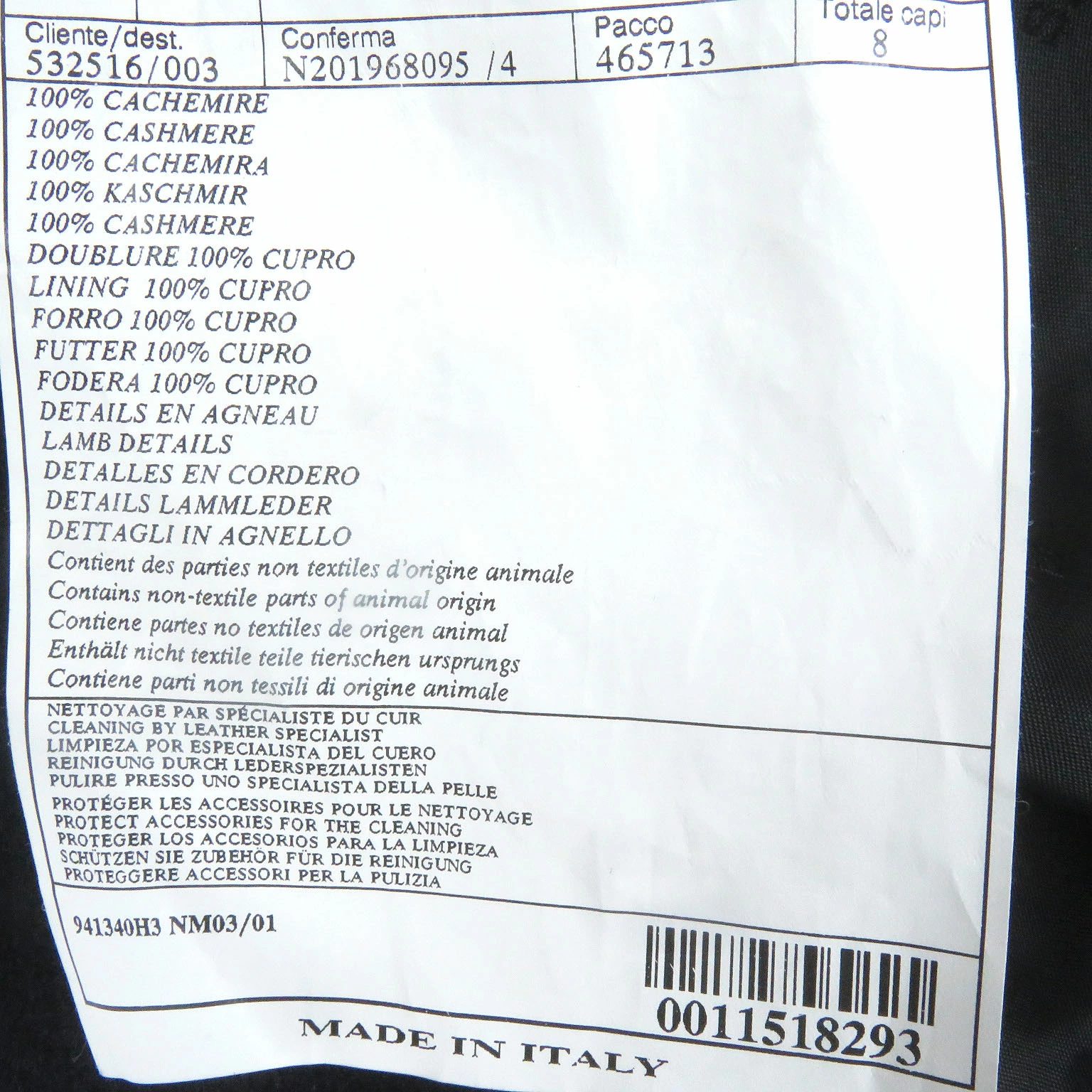 | 素材 (material) | 表地:カシミヤ100% 裏地:キュプラ100% 一部:ラムレザー | ||||||||||||||||