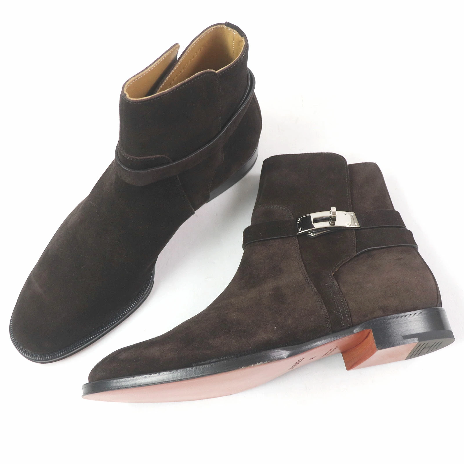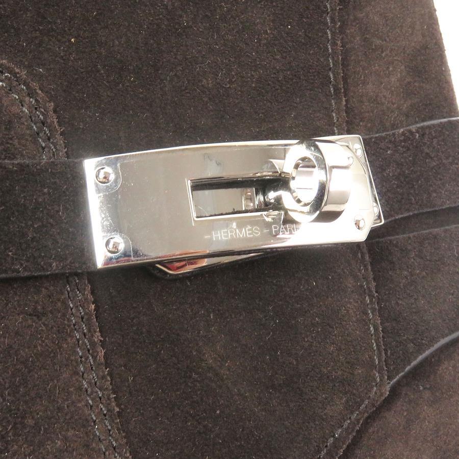 Unused Hermès Fortune Kelly hardware with strap, suede leather ankle boots, dark brown, size 41, made in Italy, men's [pre-owned]