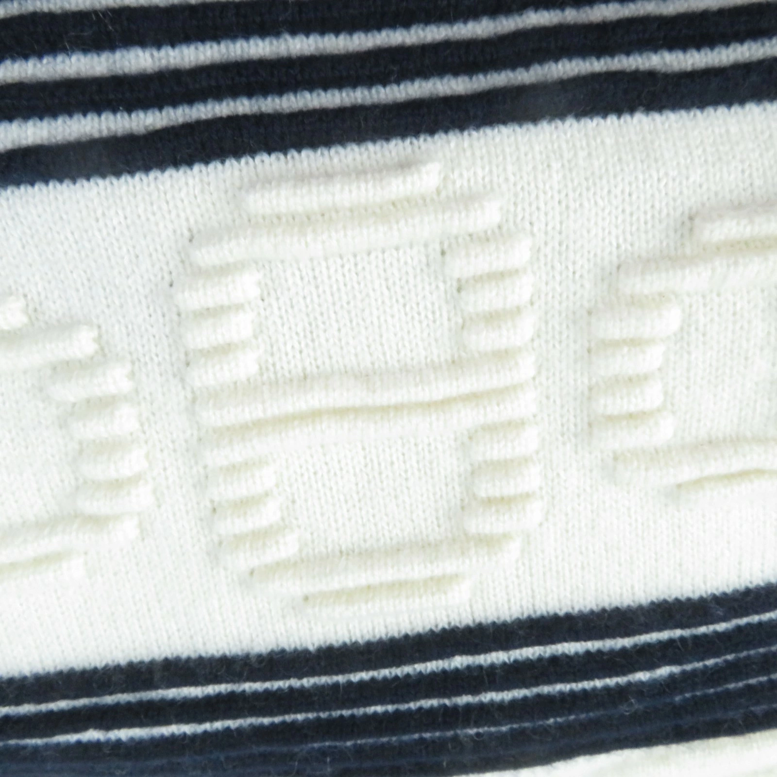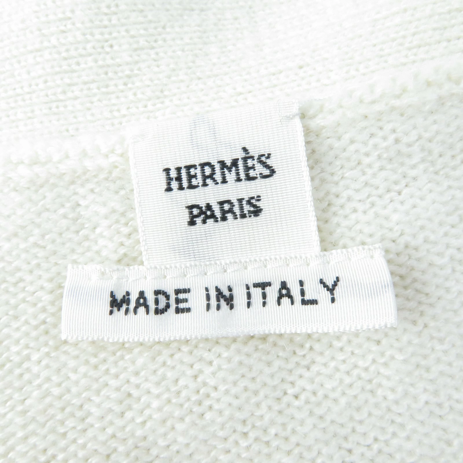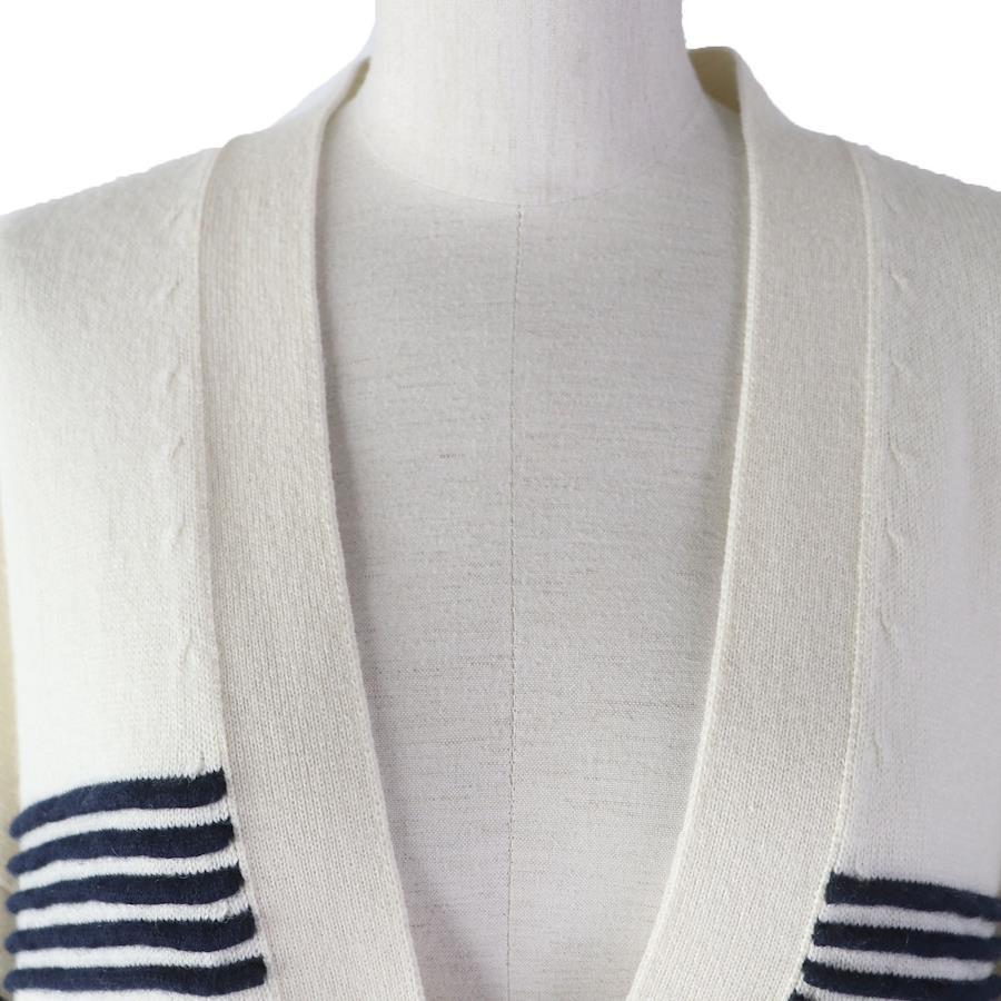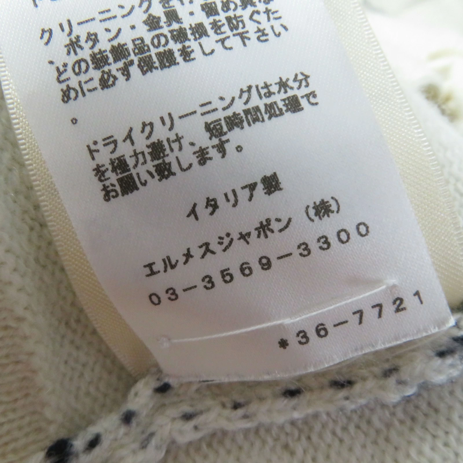 Unused HERMES 2023 3E2102D2 Cashmere and Cotton Chaine d'Ancre Pattern Long Sleeve Cardigan with Serie Buttons, Ivory and Navy, Size 38, Hanger Included, Made in Italy, Authentic, Women's [Pre-owned]