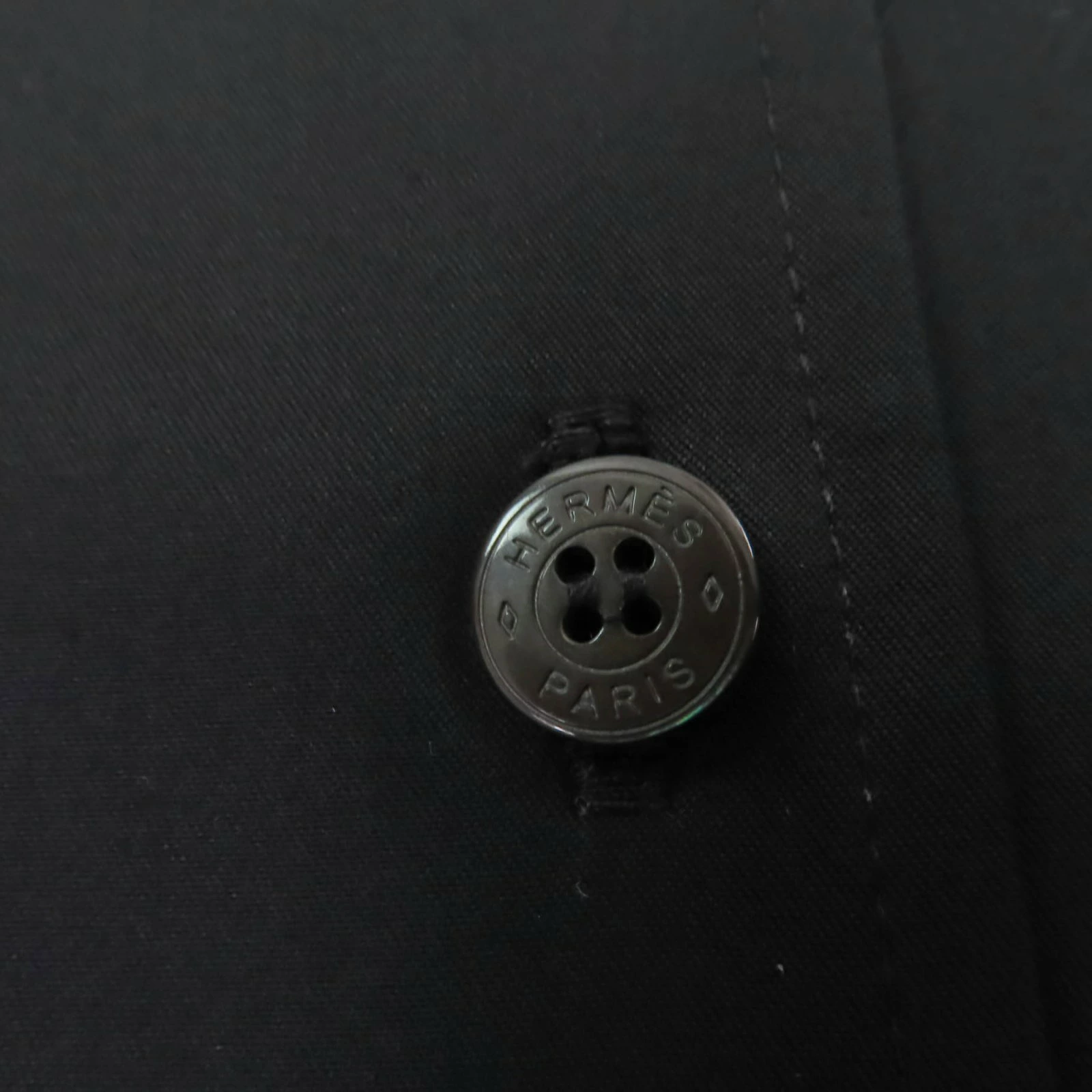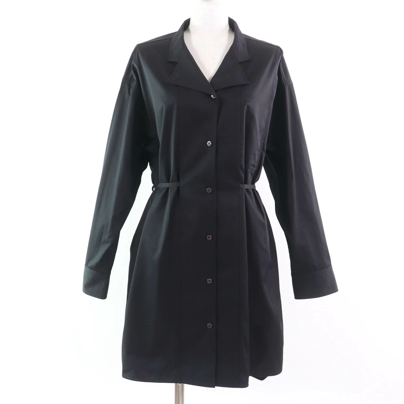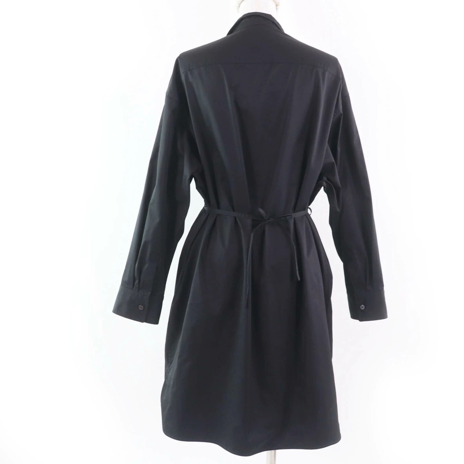 Unused HERMES 2023 3H0633DV 100% Cotton Serié Button Shirt Dress with Belt, Black, Size 40, Includes Hanger, Made in France, Authentic, Women's [Pre-owned]