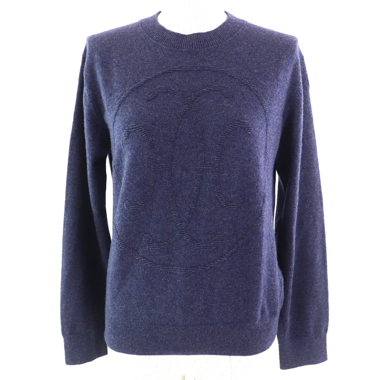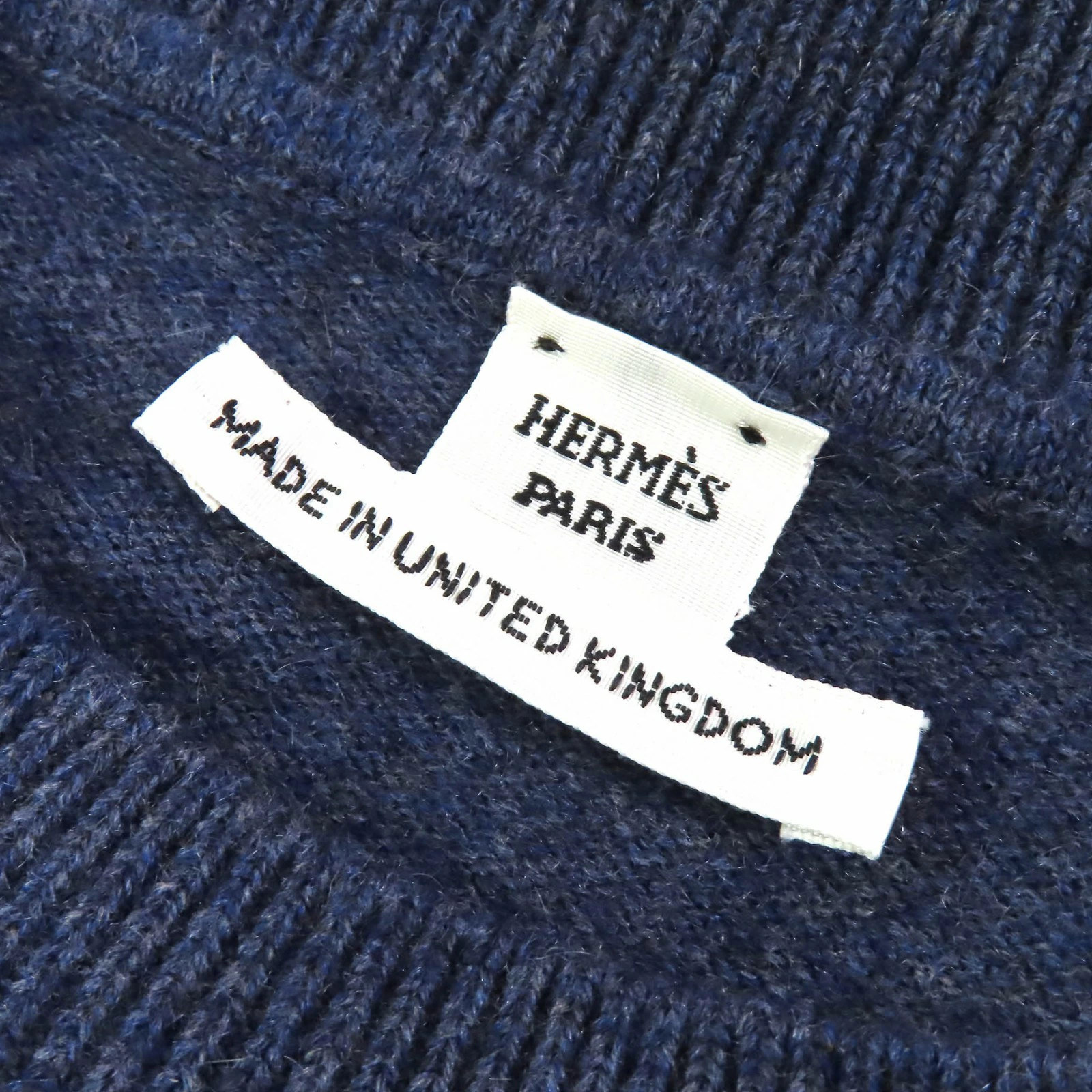 Unused HERMES 2024AW 2604D1 100% Cashmere H-Lift Long Sleeve Knit Sweater, Navy, Size 40, Made in England, Authentic, Women's [Pre-owned]