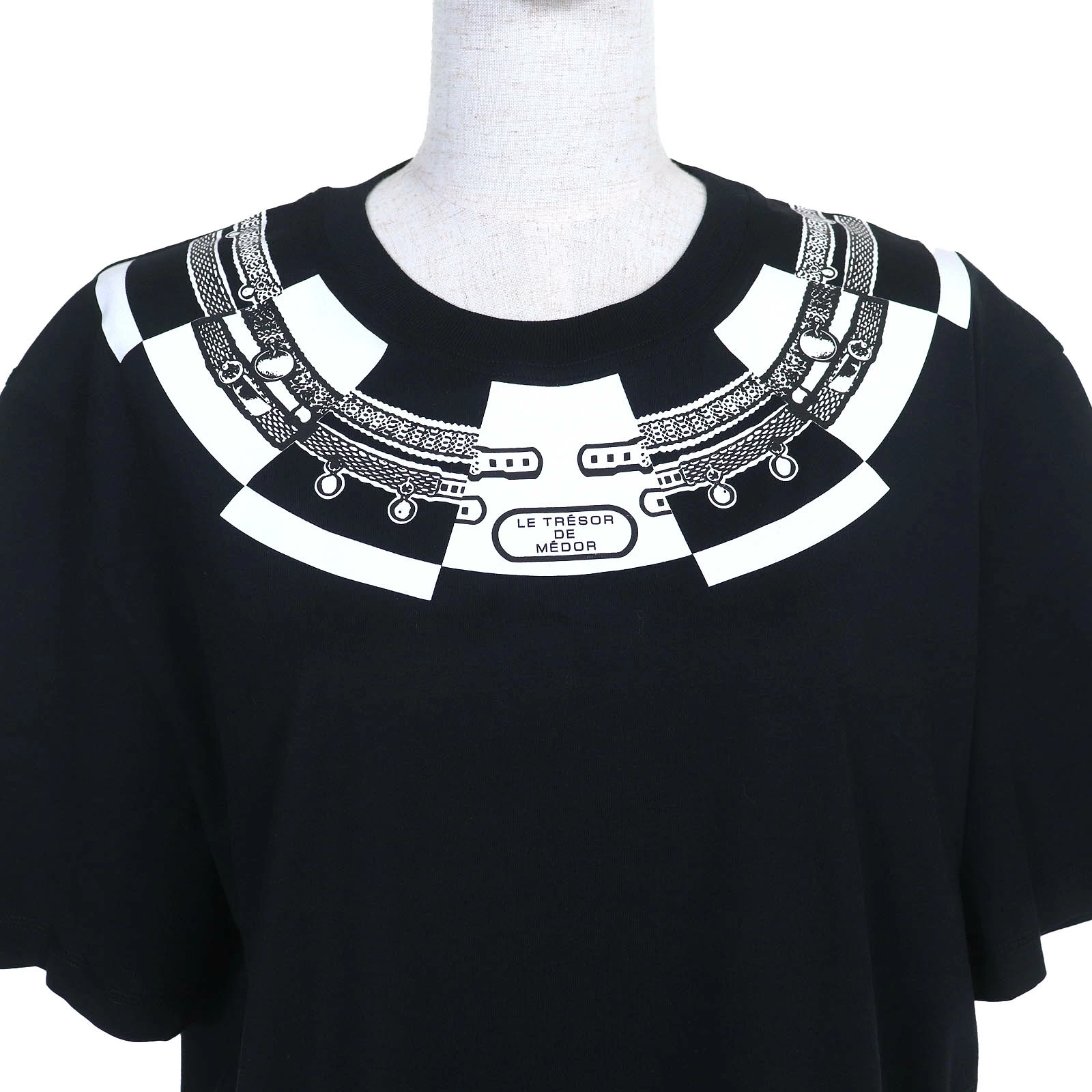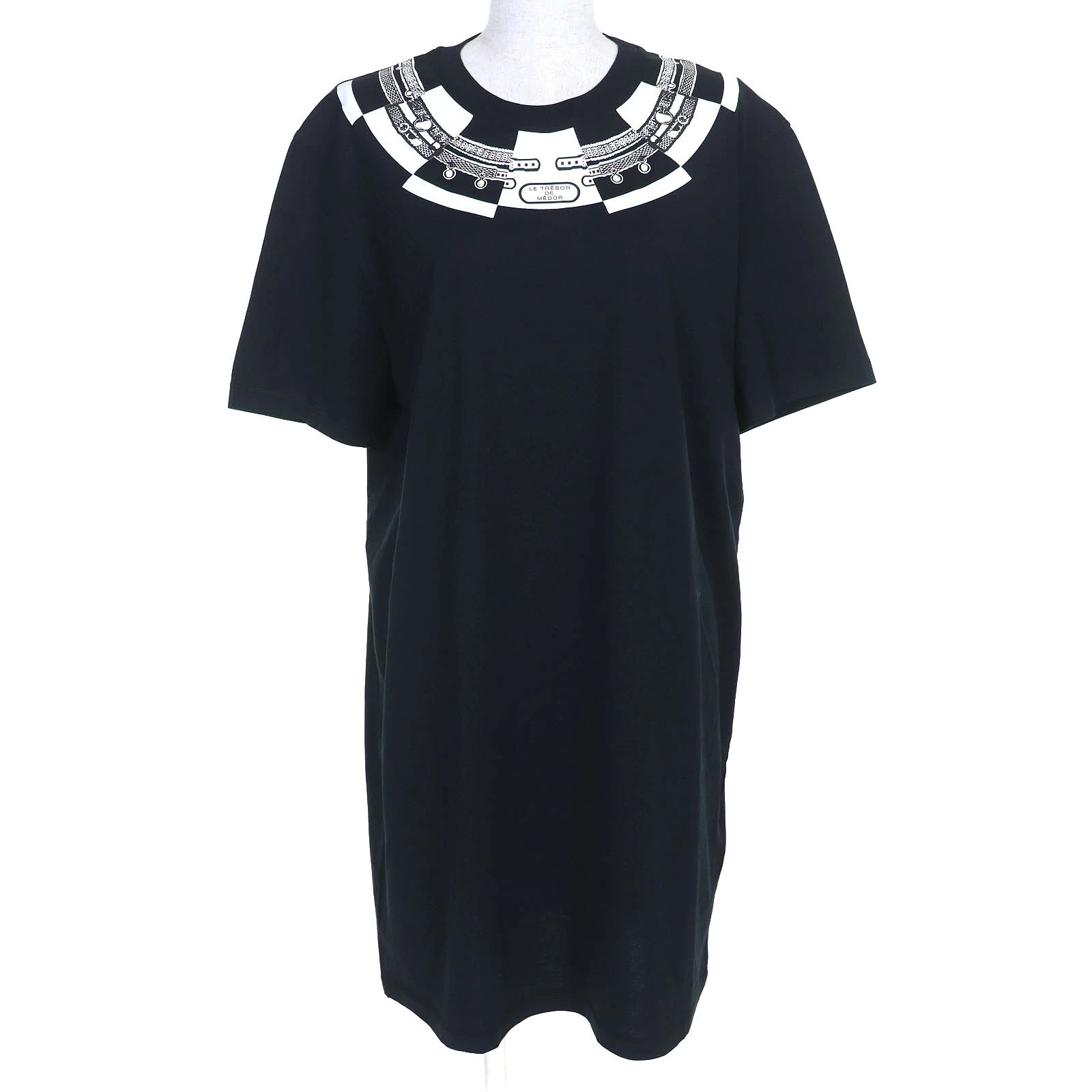 Unused HERMES 22AW Le Tresor de Medor 2H4511DU 100% Cotton Crew Neck Short Sleeve Dress, Black, Size 42, Made in France, Authentic, Women's [Pre-owned]