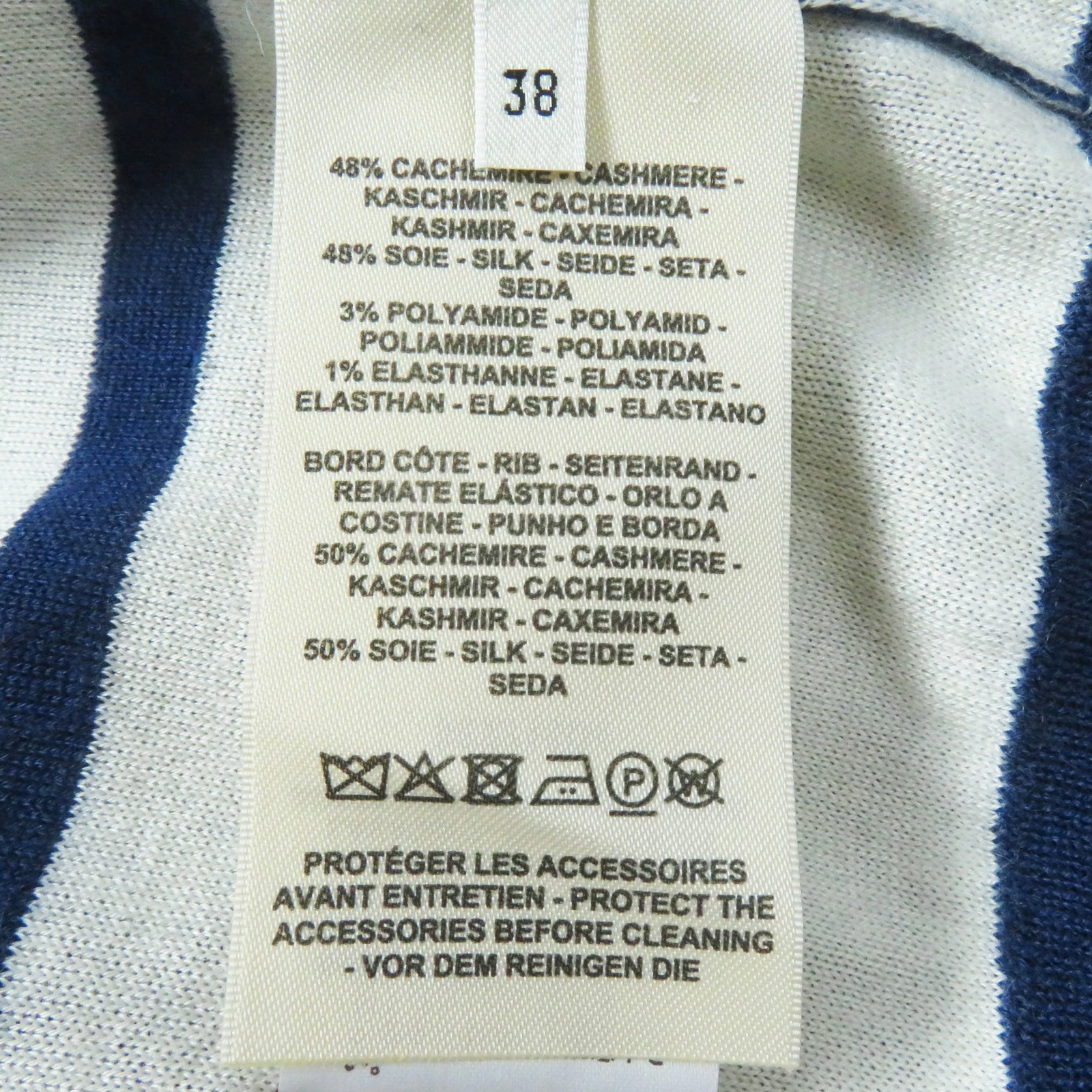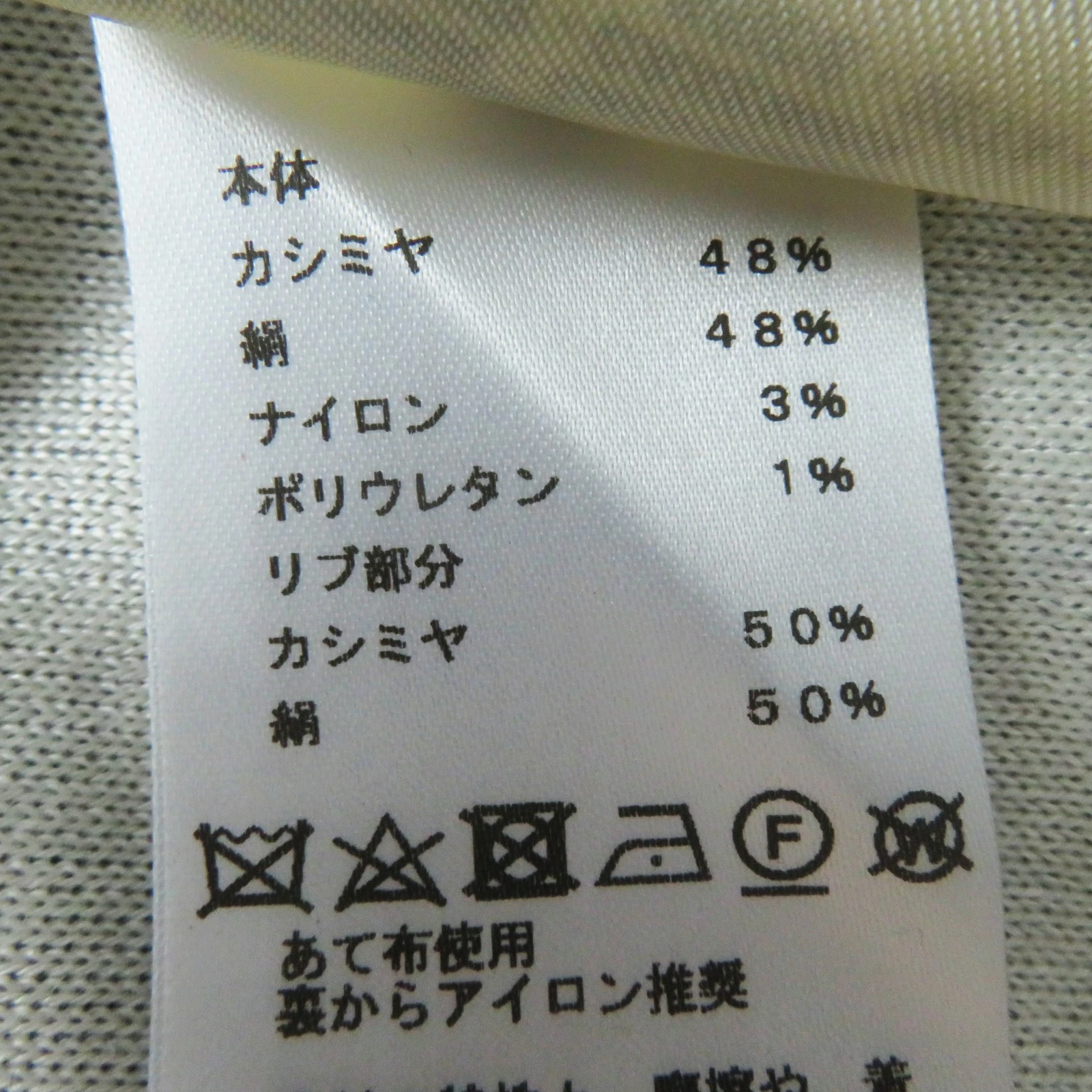 | 素材 (material) | 本体:カシミヤ48% :シルク48% :ナイロン3% :ポリウレタン1% 一部:カシミヤ50% :シルク50% | ||||||||||||||||