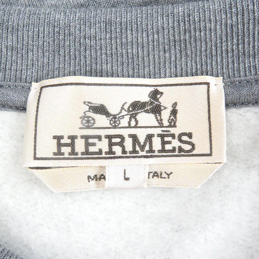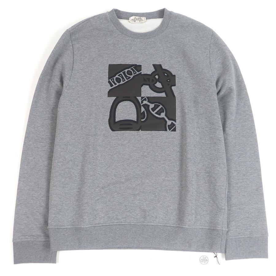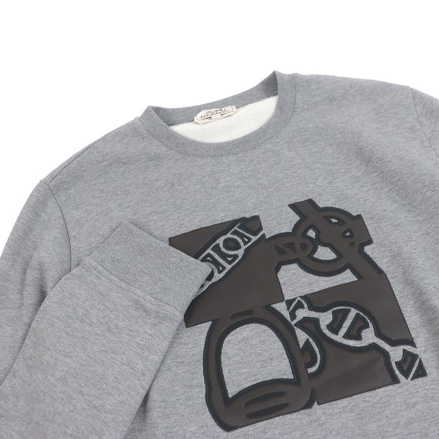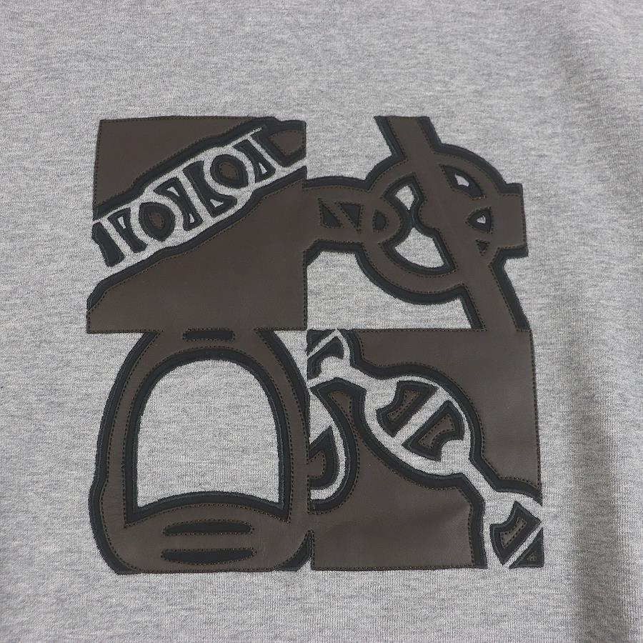 Unused HERMES 24AW Metallerie au Carre Lamb Leather Patch Sweatshirt, Gray, Size L, with Box, Made in Italy, Authentic, Men's [Pre-owned]