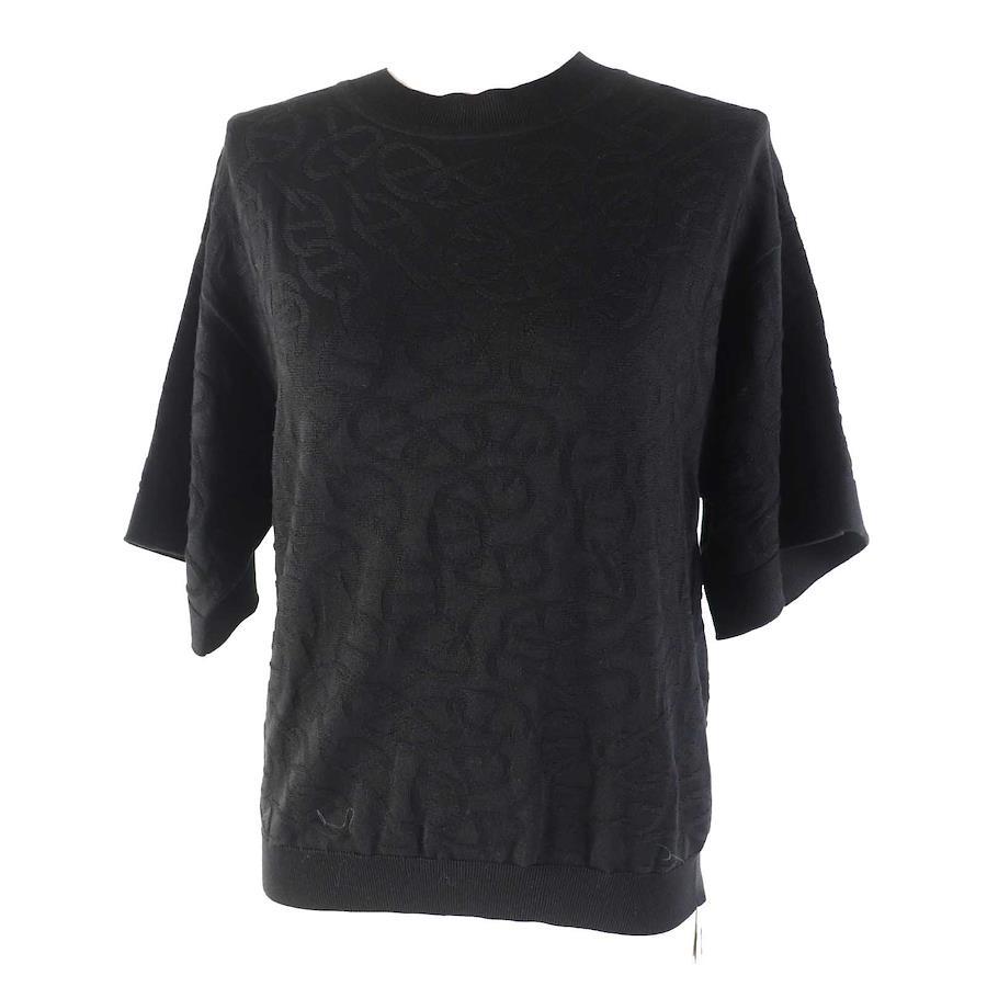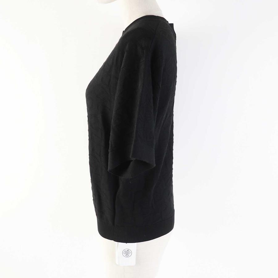 Unused HERMES 24SS 4E2649DC Naoussa Chaine Silk and Cotton Oversized Chaine d'Ancre Print Short Sleeve Knit, Black, Size 34, Made in Italy, Authentic, Women's [Pre-owned]