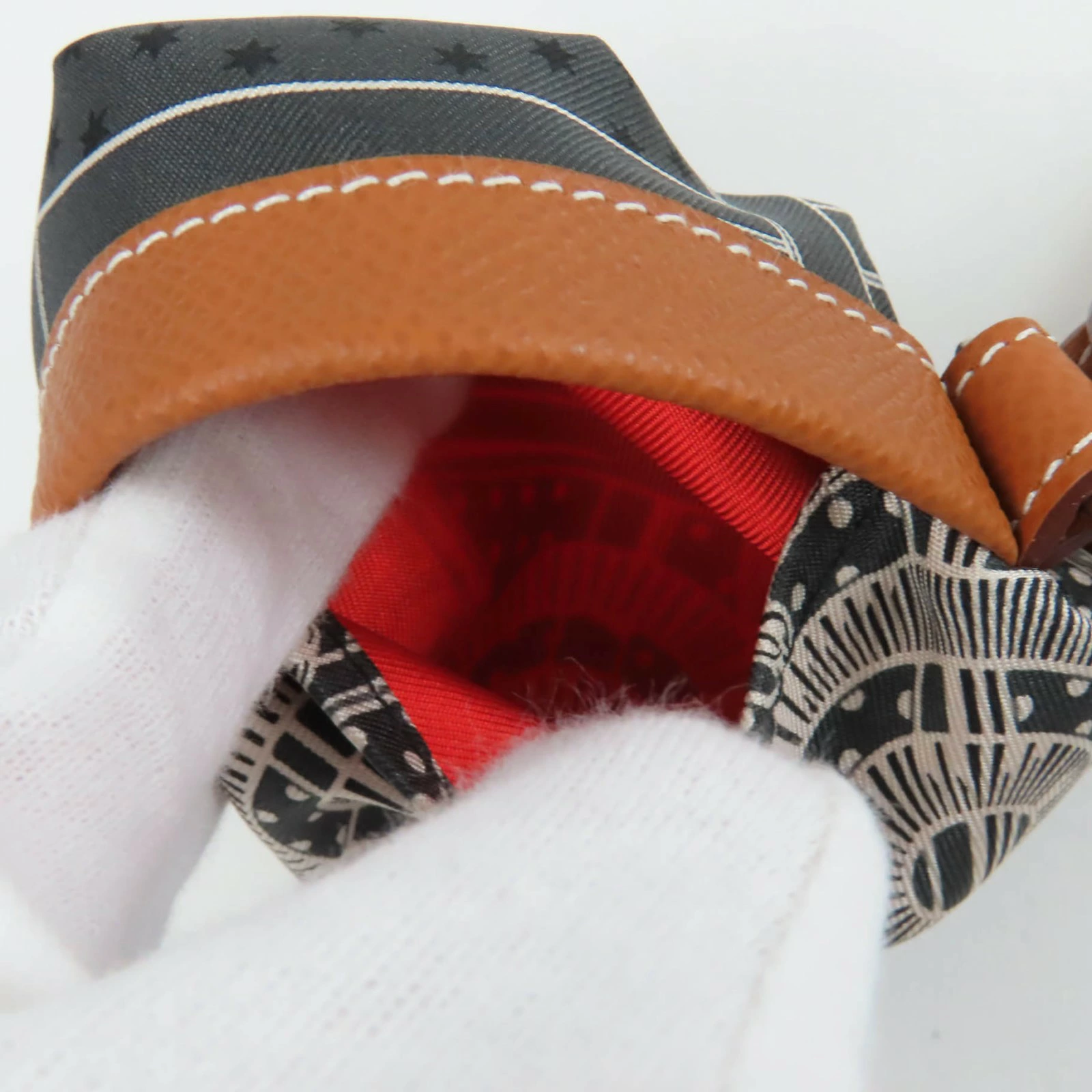Unused HERMES Avex Soie AirPods Pro Case, Silk and Leather Pouch, Gray, W Stamp, Made in France, Women's [Pre-owned]