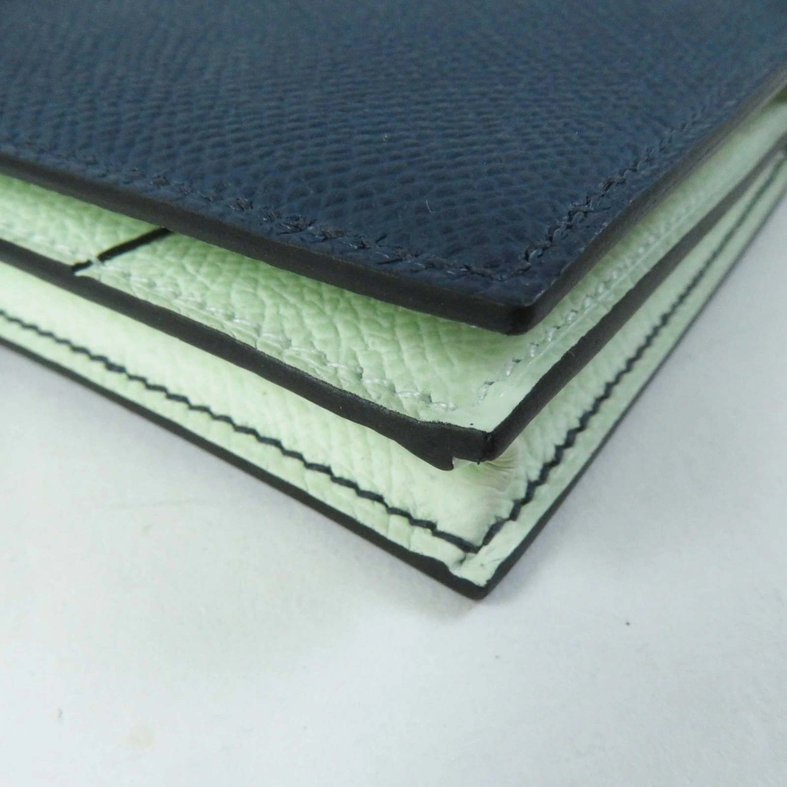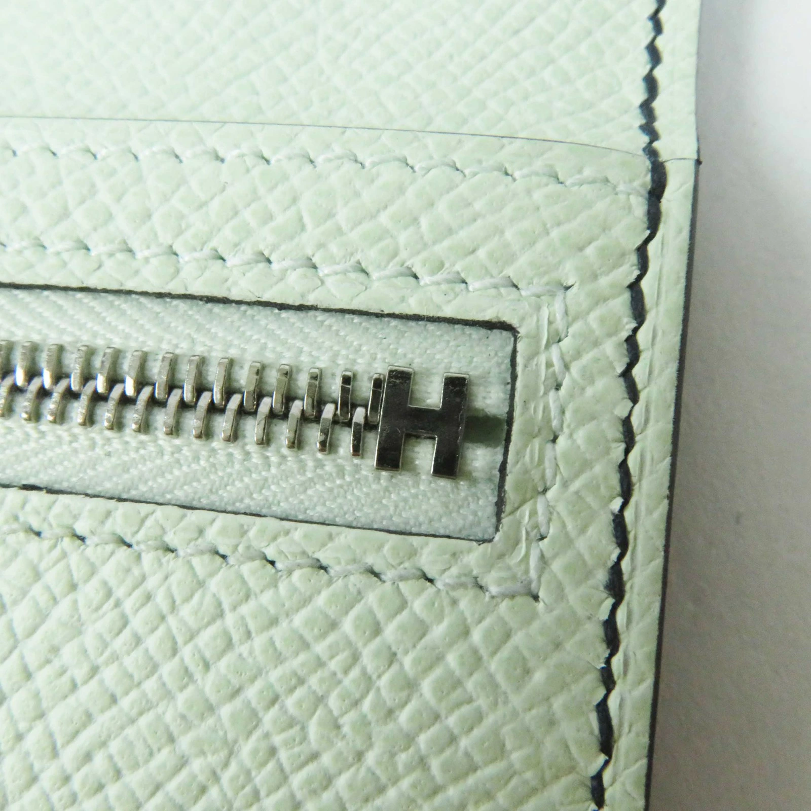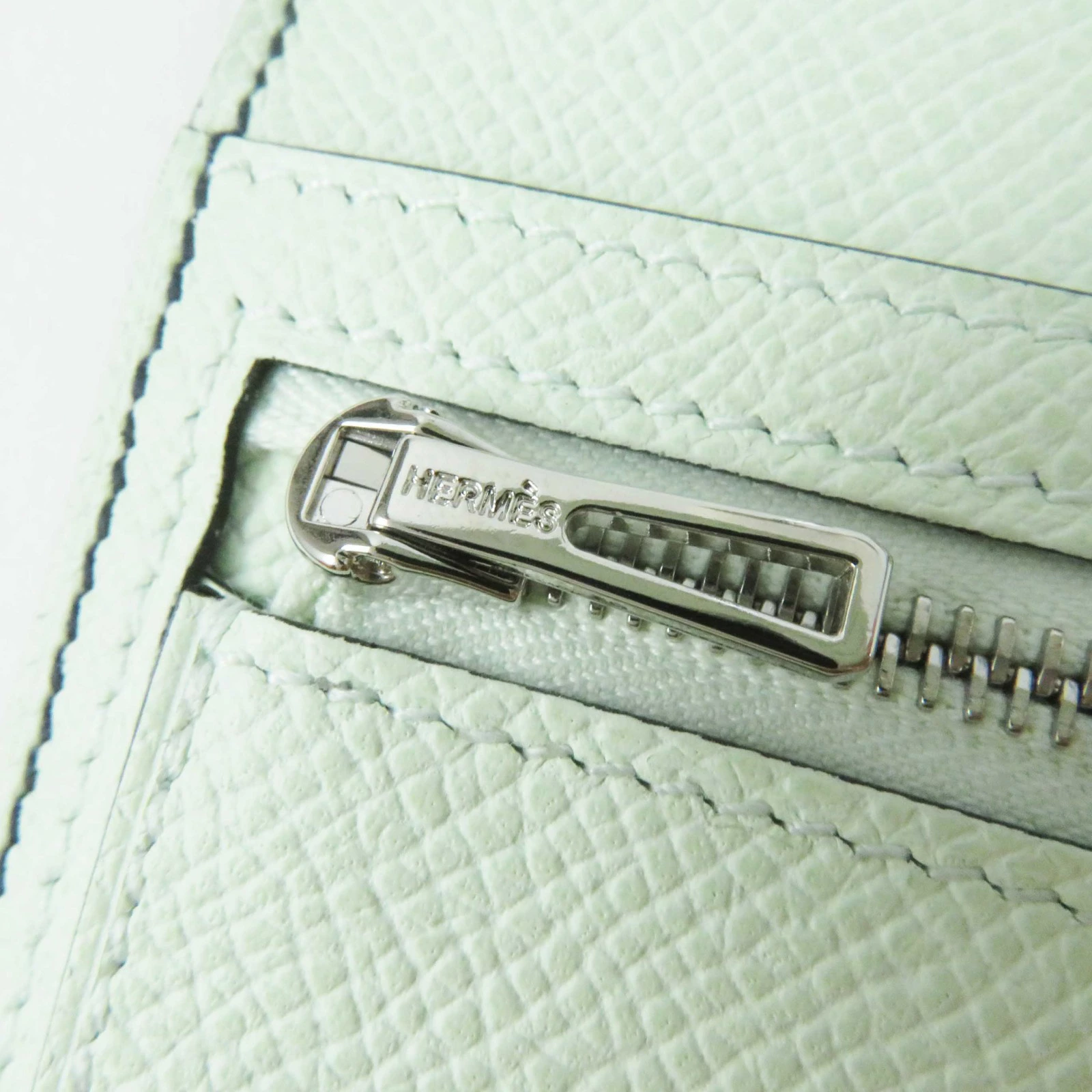 Unused HERMES Bearn Soufflet Verso Bleu de Plus/Vert Fizz Silver Hardware Epsom Leather Long Wallet with Double Stamp, Box Included, Made in Italy, Authentic, Women's [Pre-owned]