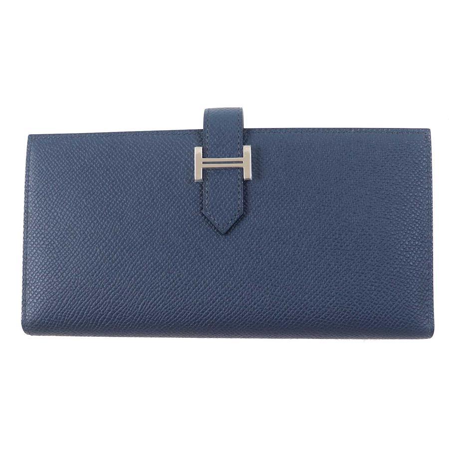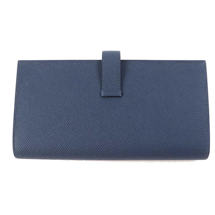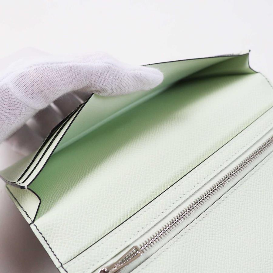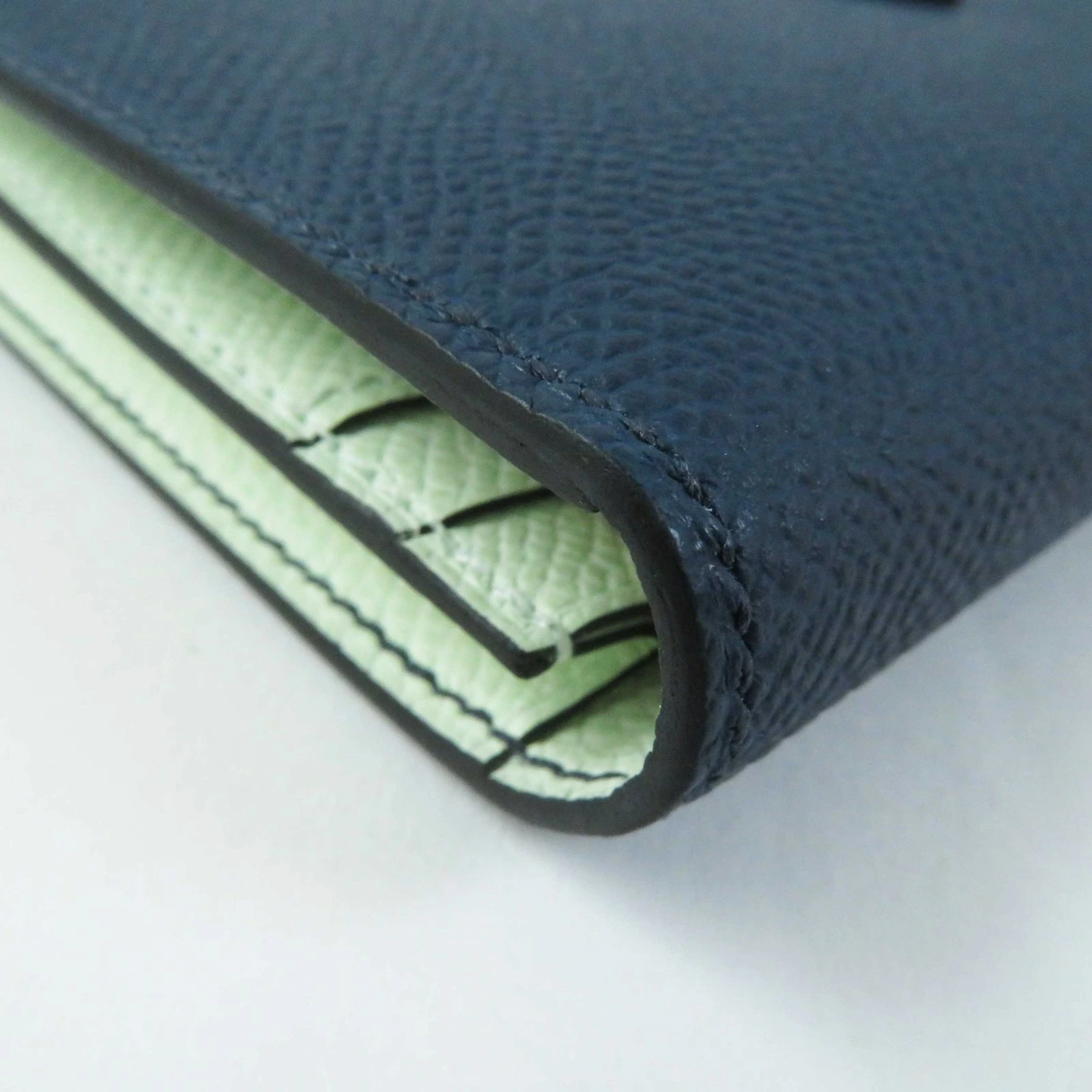 Unused HERMES Bearn Soufflet Verso Bleu de Plus/Vert Fizz Silver Hardware Epsom Leather Long Wallet with Double Stamp, Box Included, Made in Italy, Authentic, Women's [Pre-owned]