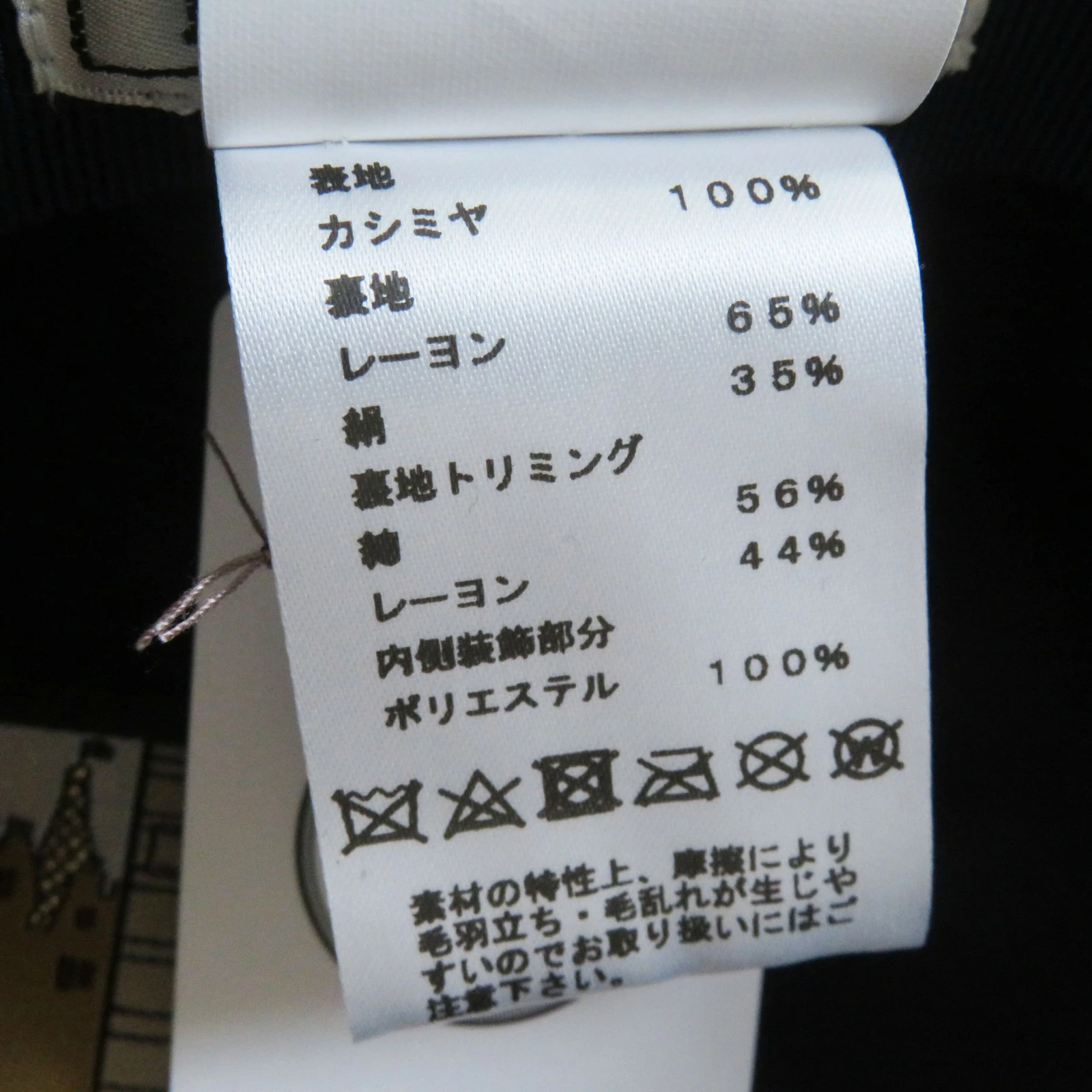 | 素材 (material) | 表地:カシミヤ100% 裏地:ビスコース(レーヨン)65% :シルク35% 表地:カシミヤ100% 裏地:ビスコース(レーヨン)65% :シルク35% 裏トリミング:コットン56%・ビスコース44% 裏装飾:ポリエステル100% | ||||||||||||||||