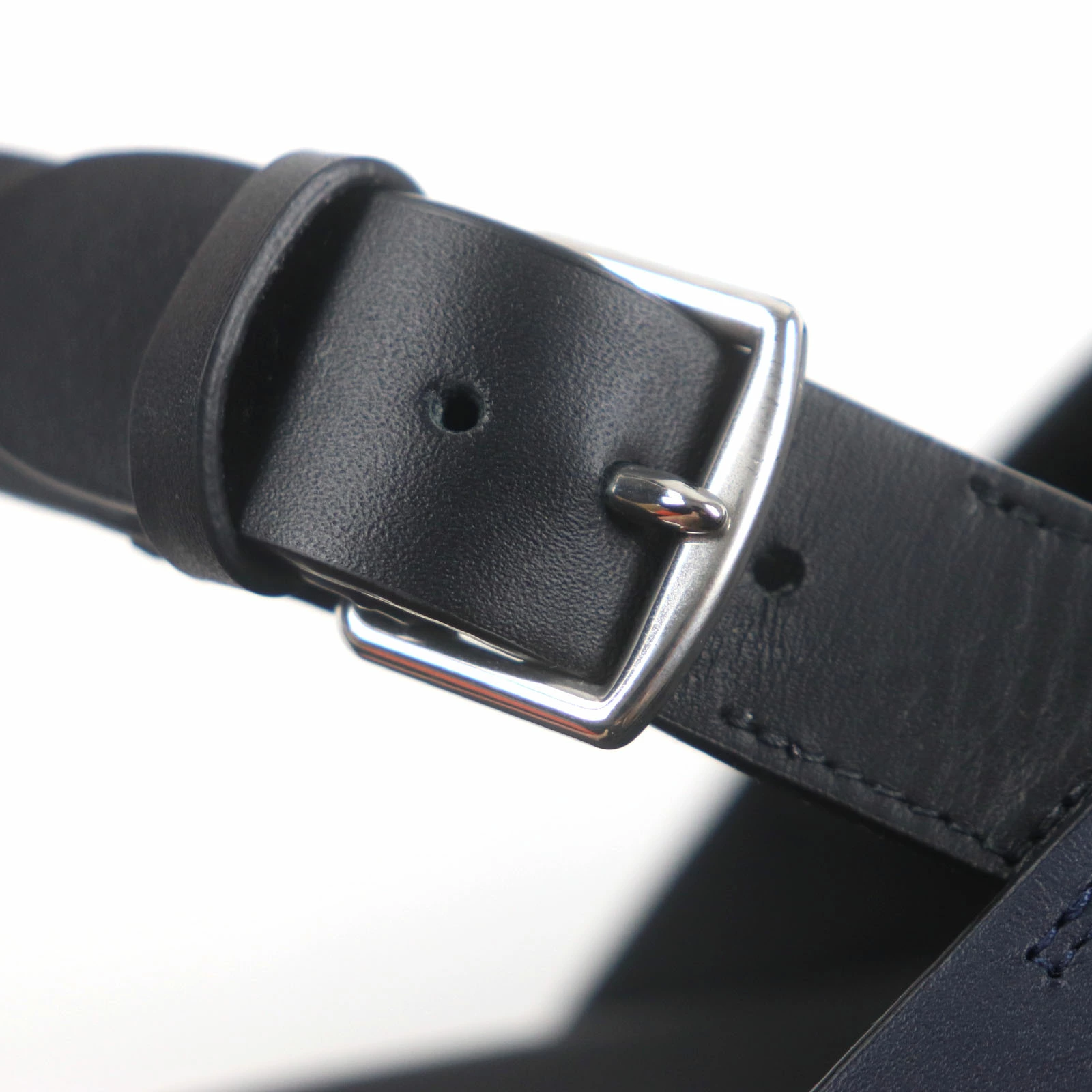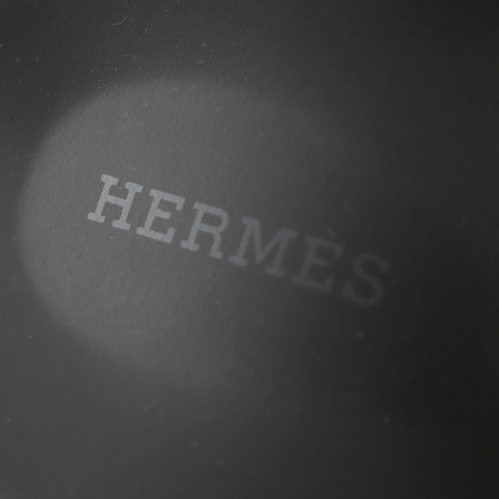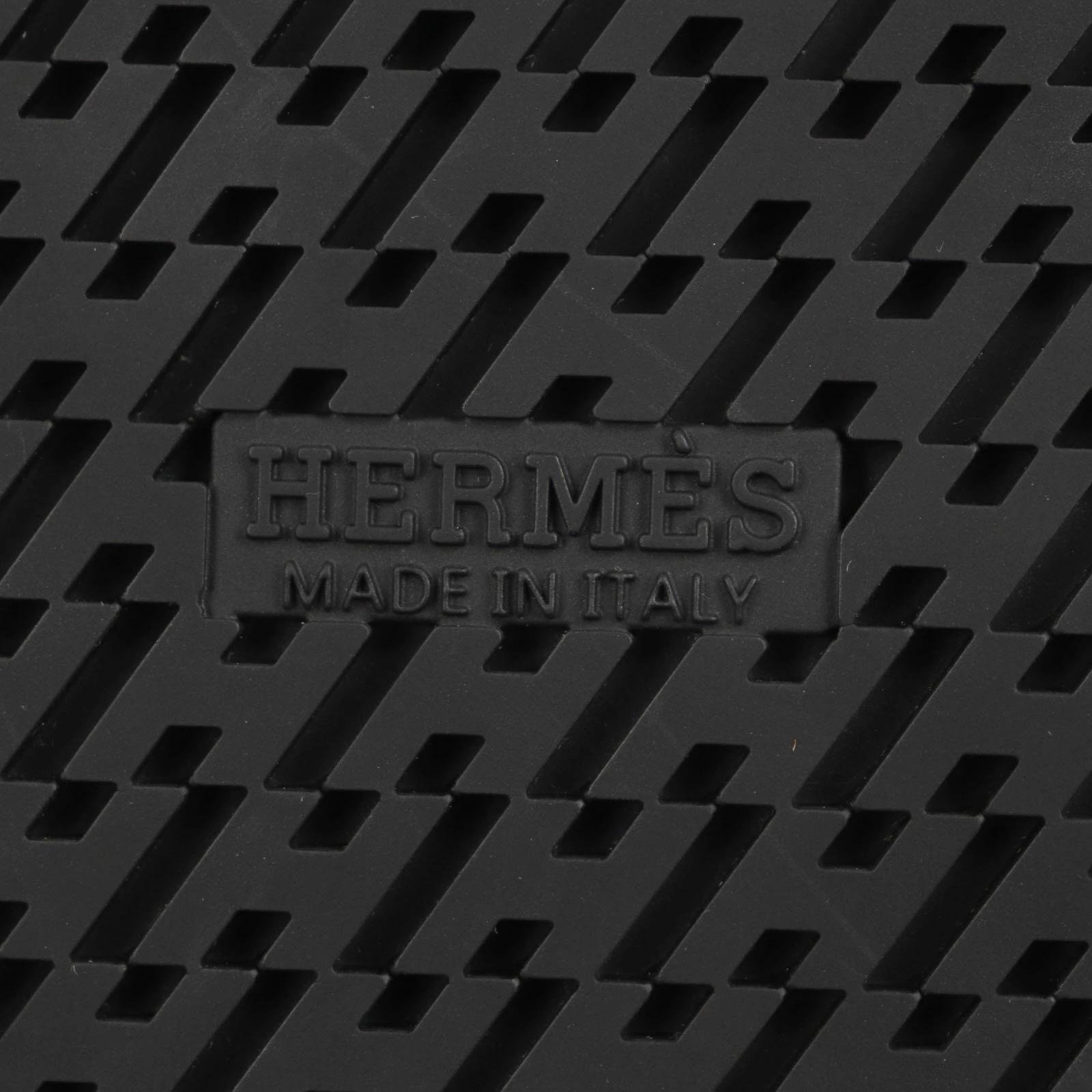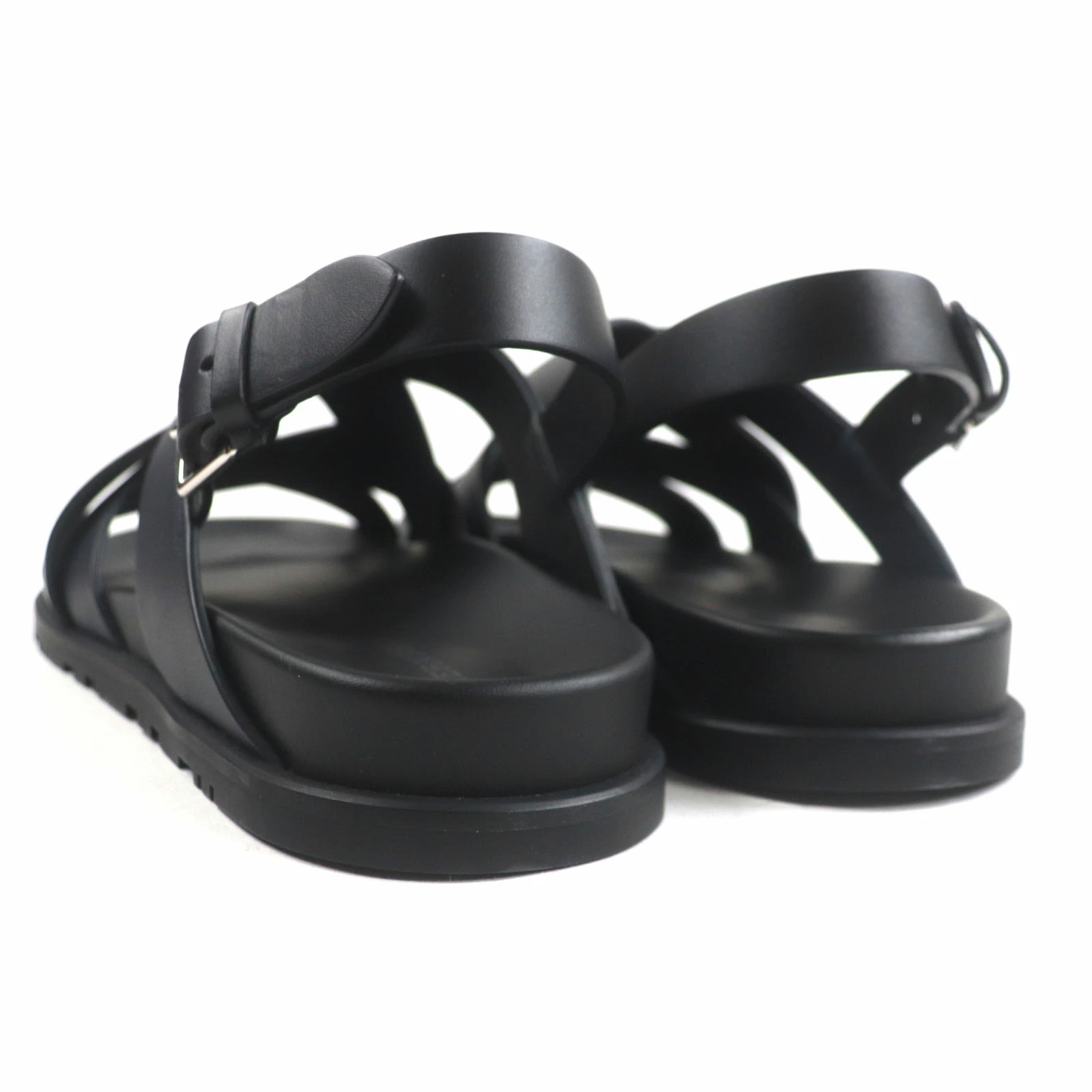 Unused HERMES Hercules leather sandals with silver hardware, cross straps, and an H logo. Size 44, black and navy. Comes with box and dust bag. Made in Italy. Pre-owned.