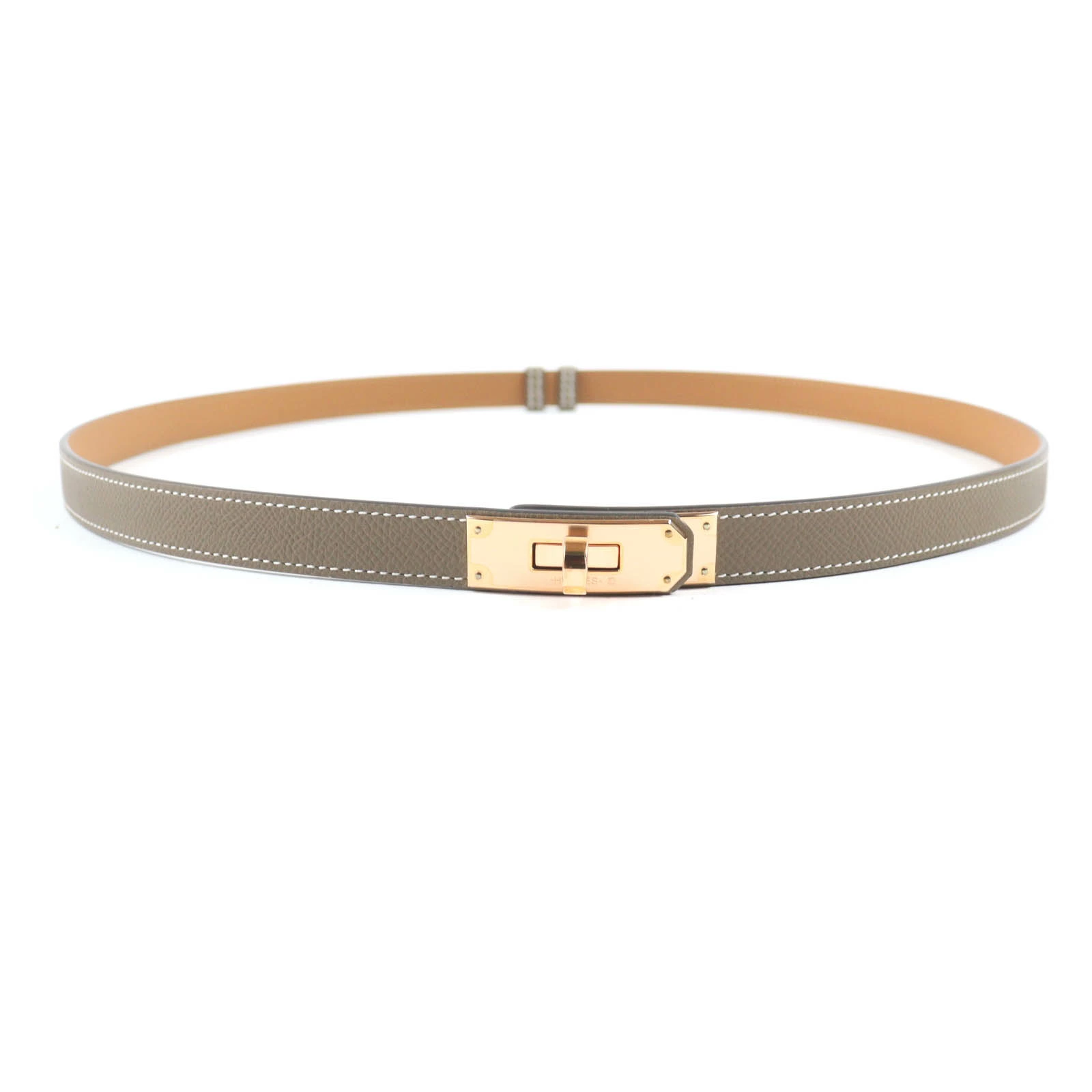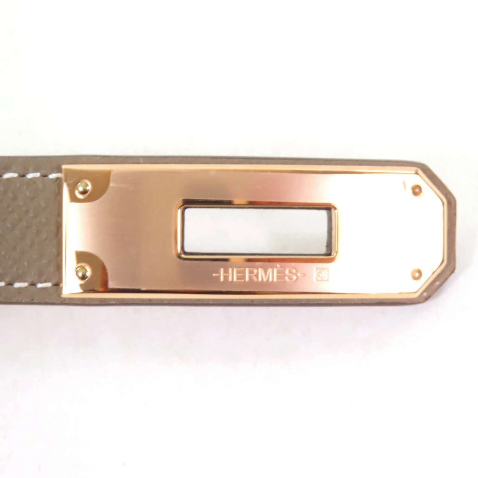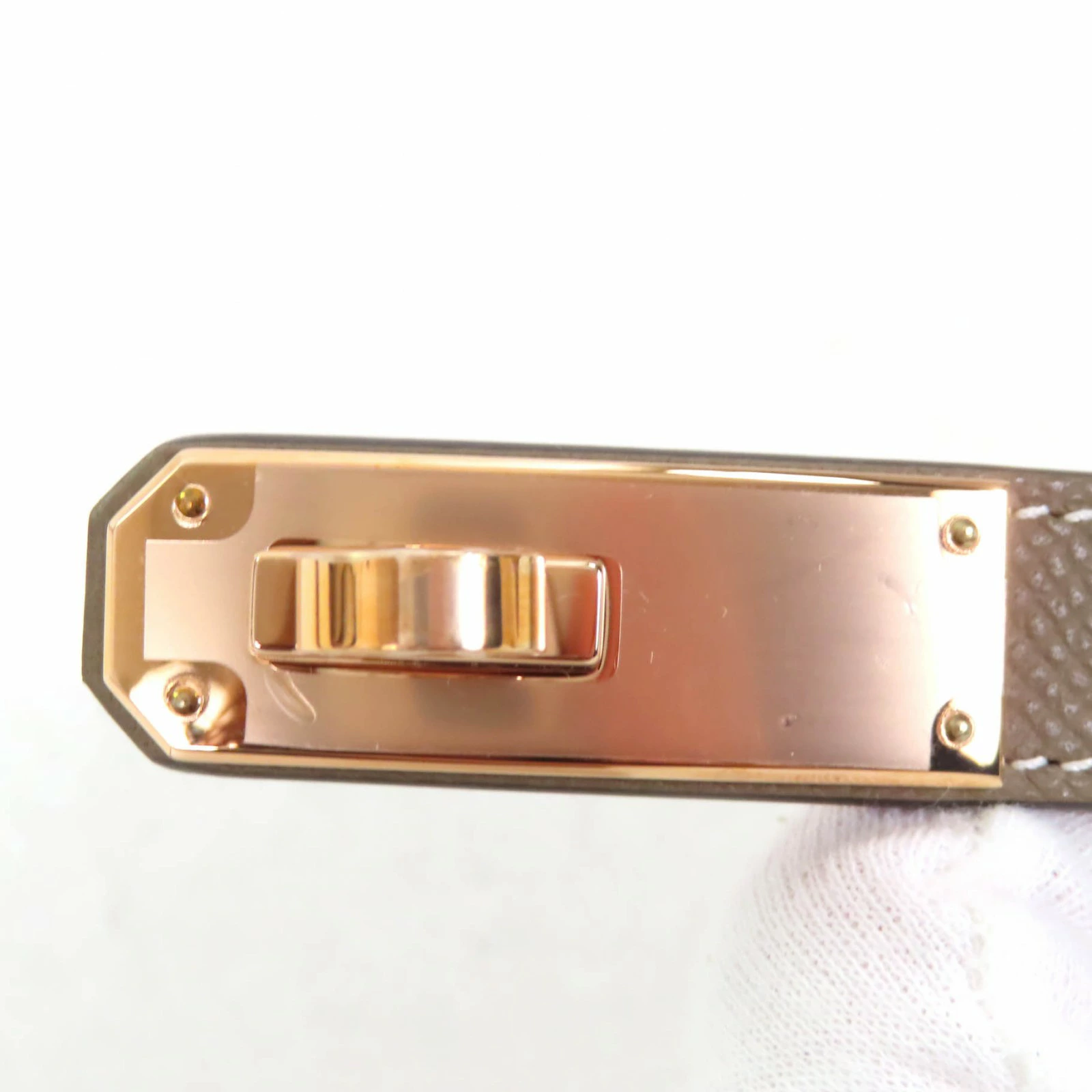 Unused HERMES Kelly 18 Etoupe Epsom Leather with Pink Gold Hardware, TM W Stamp, Made in France, with Box and Dust Bag. Pre-owned.