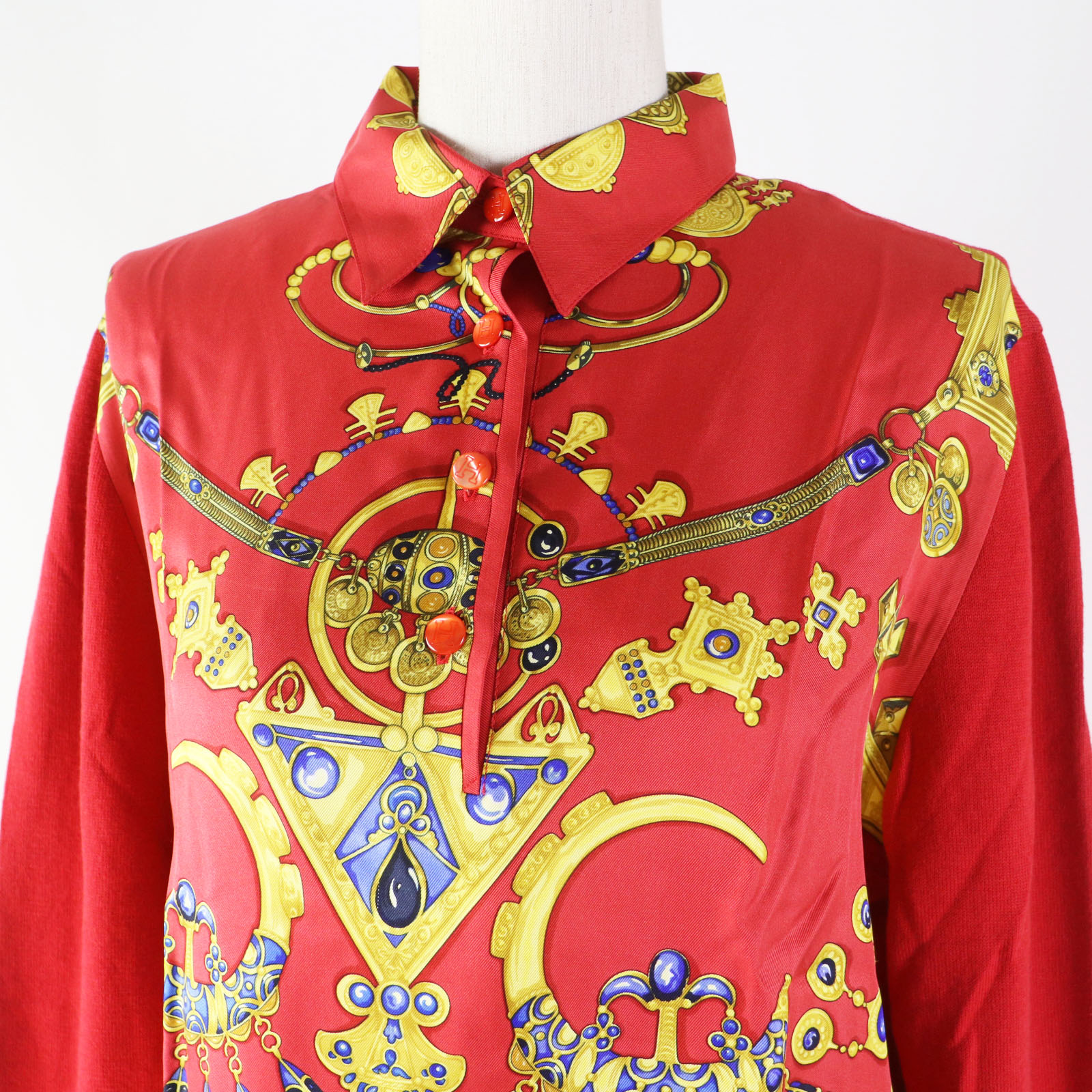 | 素材 (material)  | 一部:シルク100% ニット部分:コットン85%・ウール15%(カシミヤ15%)  | ||||||||||||||||