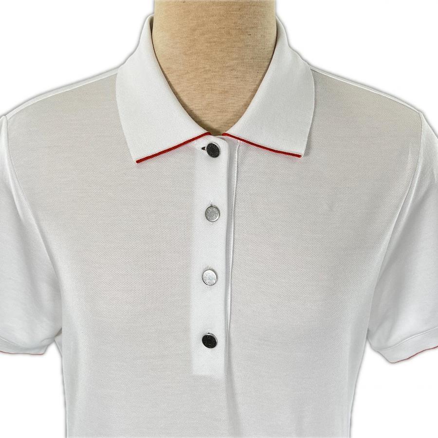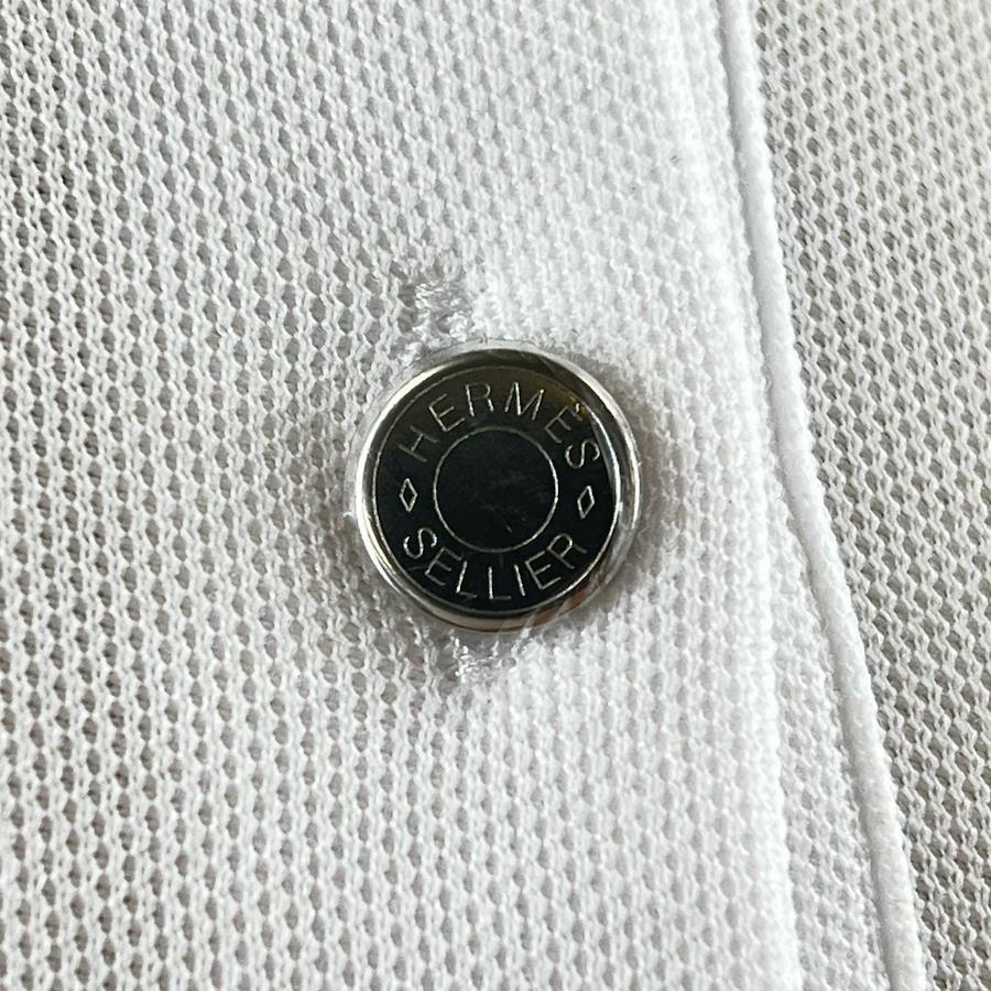 Unused HERMES Serie Button Piping Design Short Sleeve Polo Shirt White Size L Made in Italy Authentic Women's [Pre-owned]