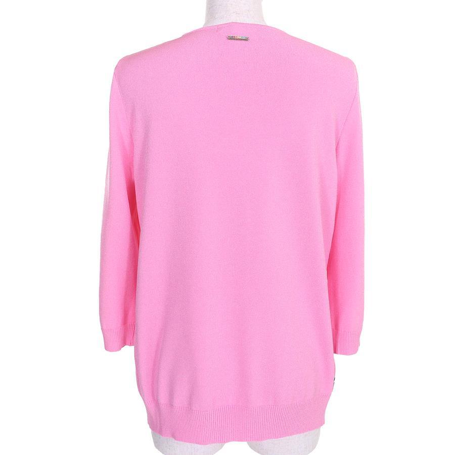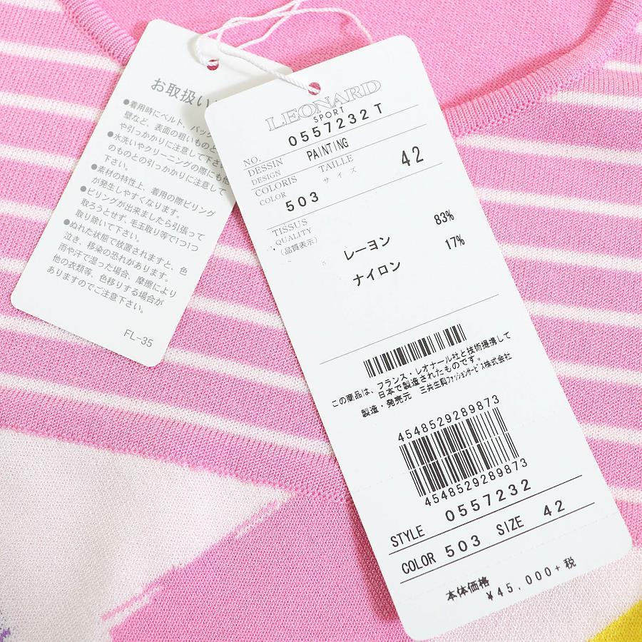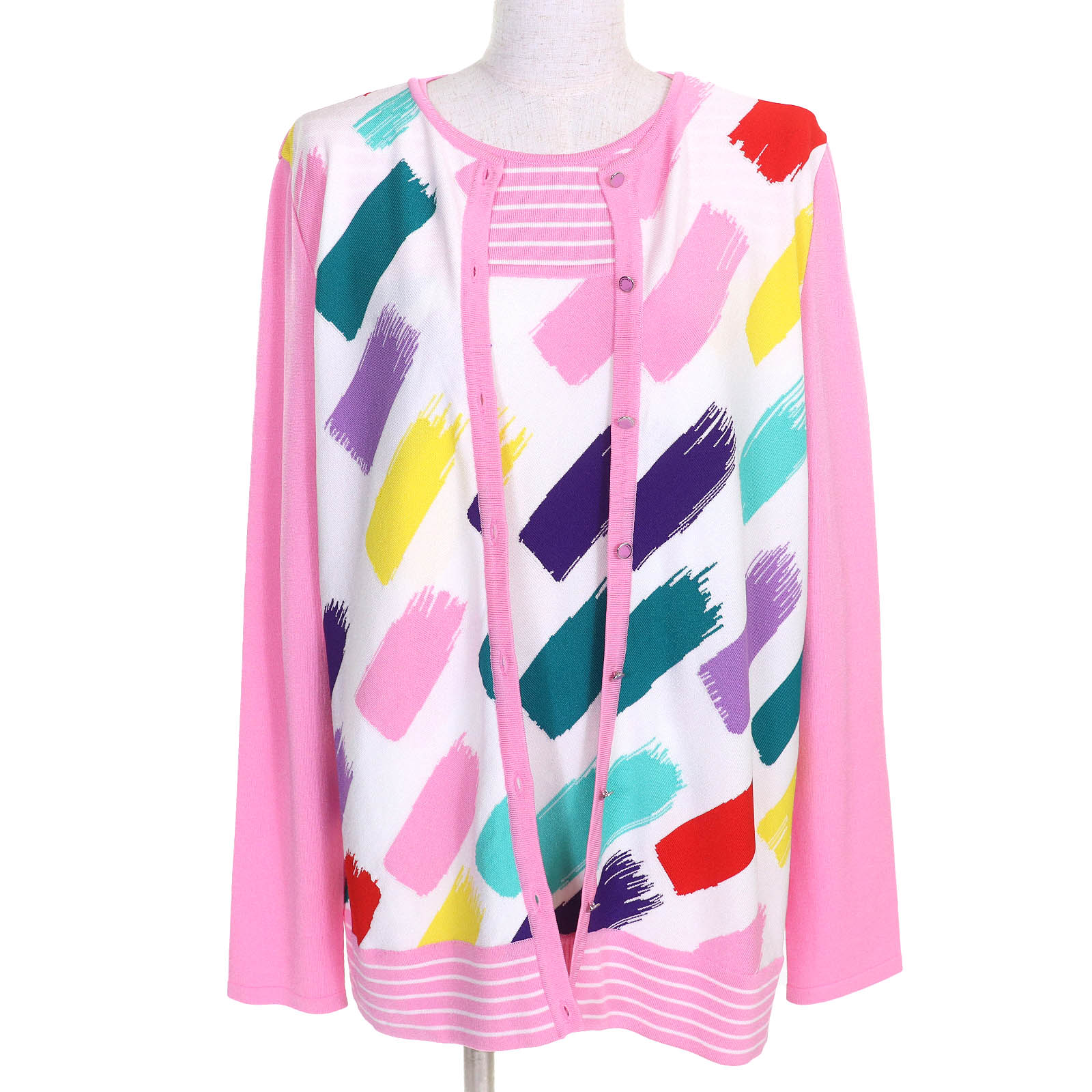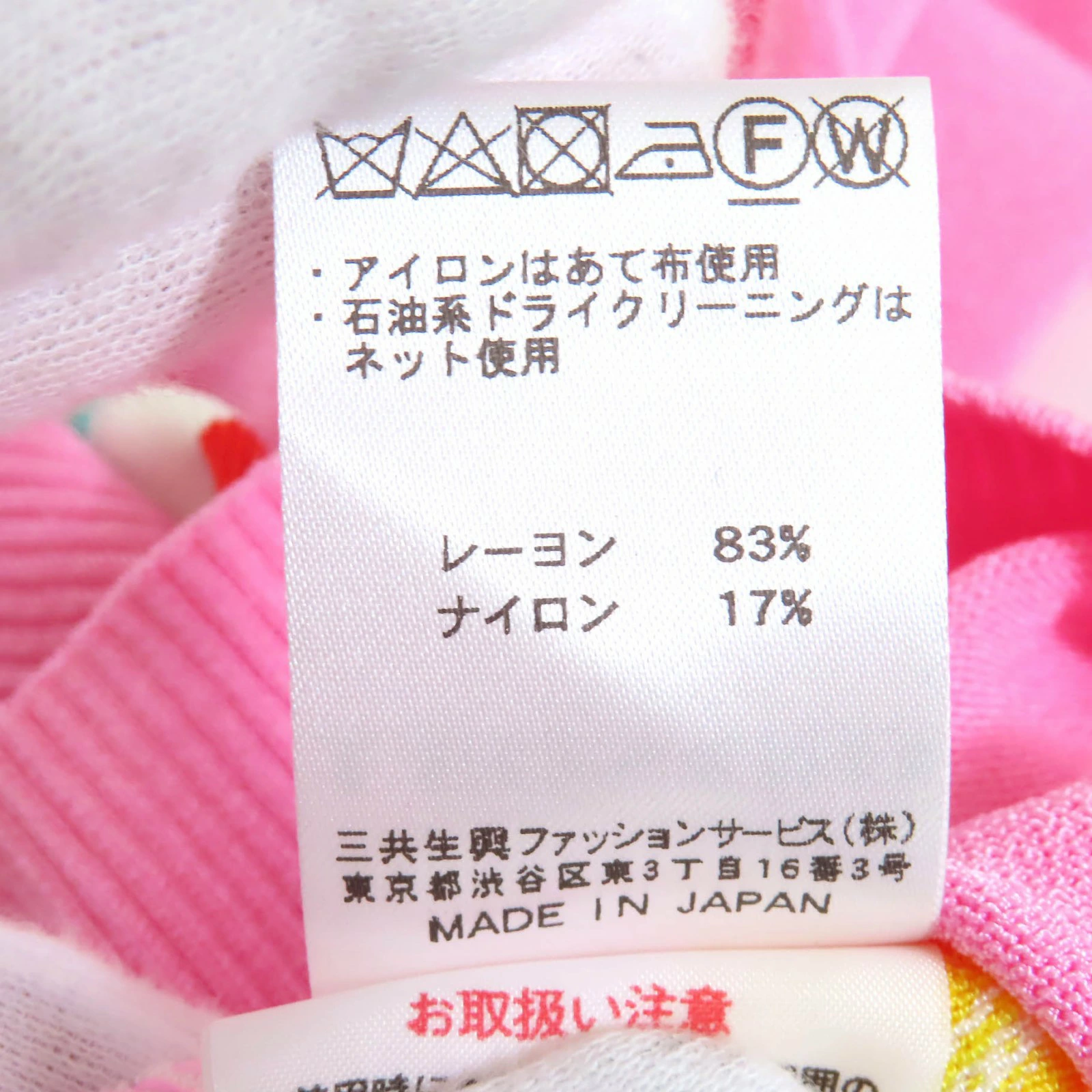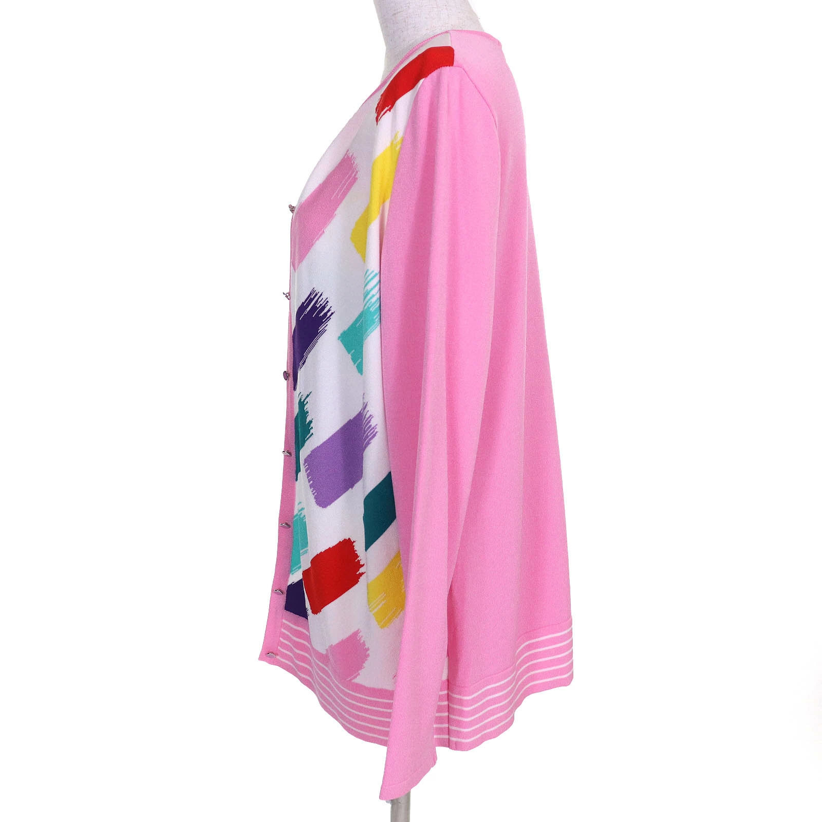 Unused LEONARD SPORT all-over logo button cardigan, short-sleeved cut-and-sew ensemble, pink and multicolor, size 42, made in Japan, authentic, women's. Valued at approximately ¥90,000. [Pre-owned]