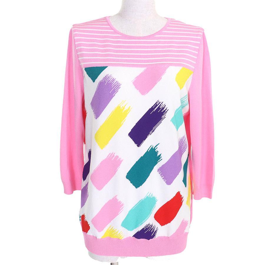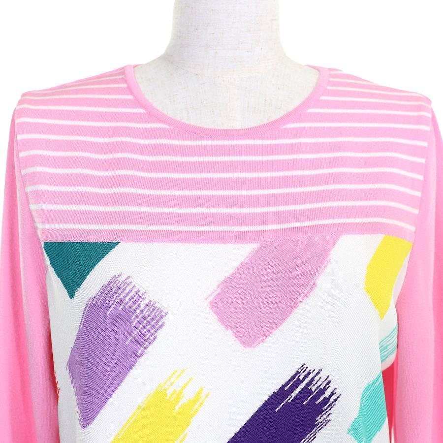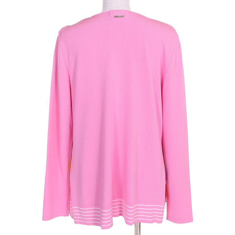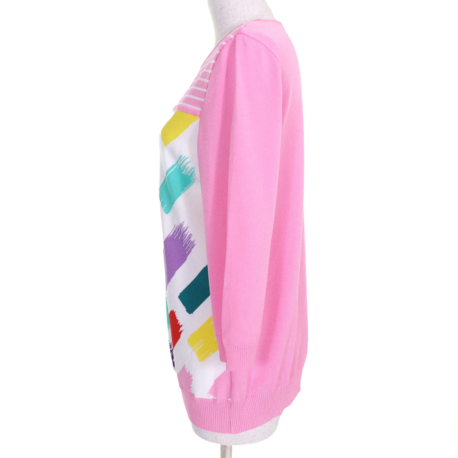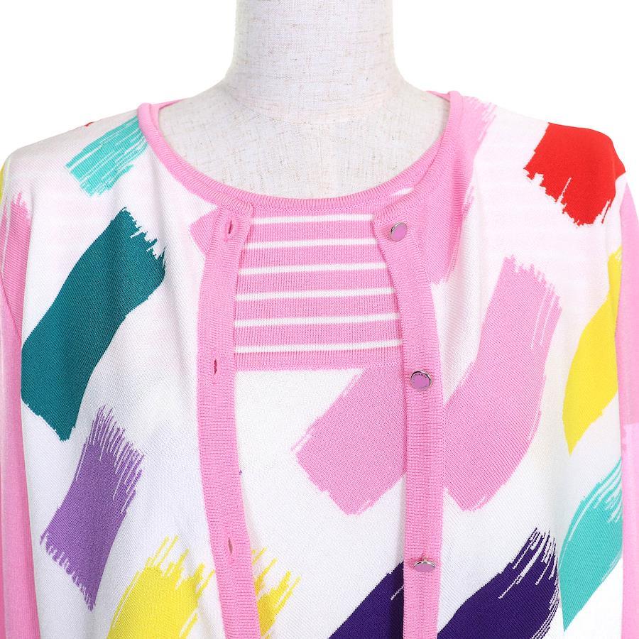 Unused LEONARD SPORT all-over logo button cardigan, short-sleeved cut-and-sew ensemble, pink and multicolor, size 42, made in Japan, authentic, women's. Valued at approximately ¥90,000. [Pre-owned]