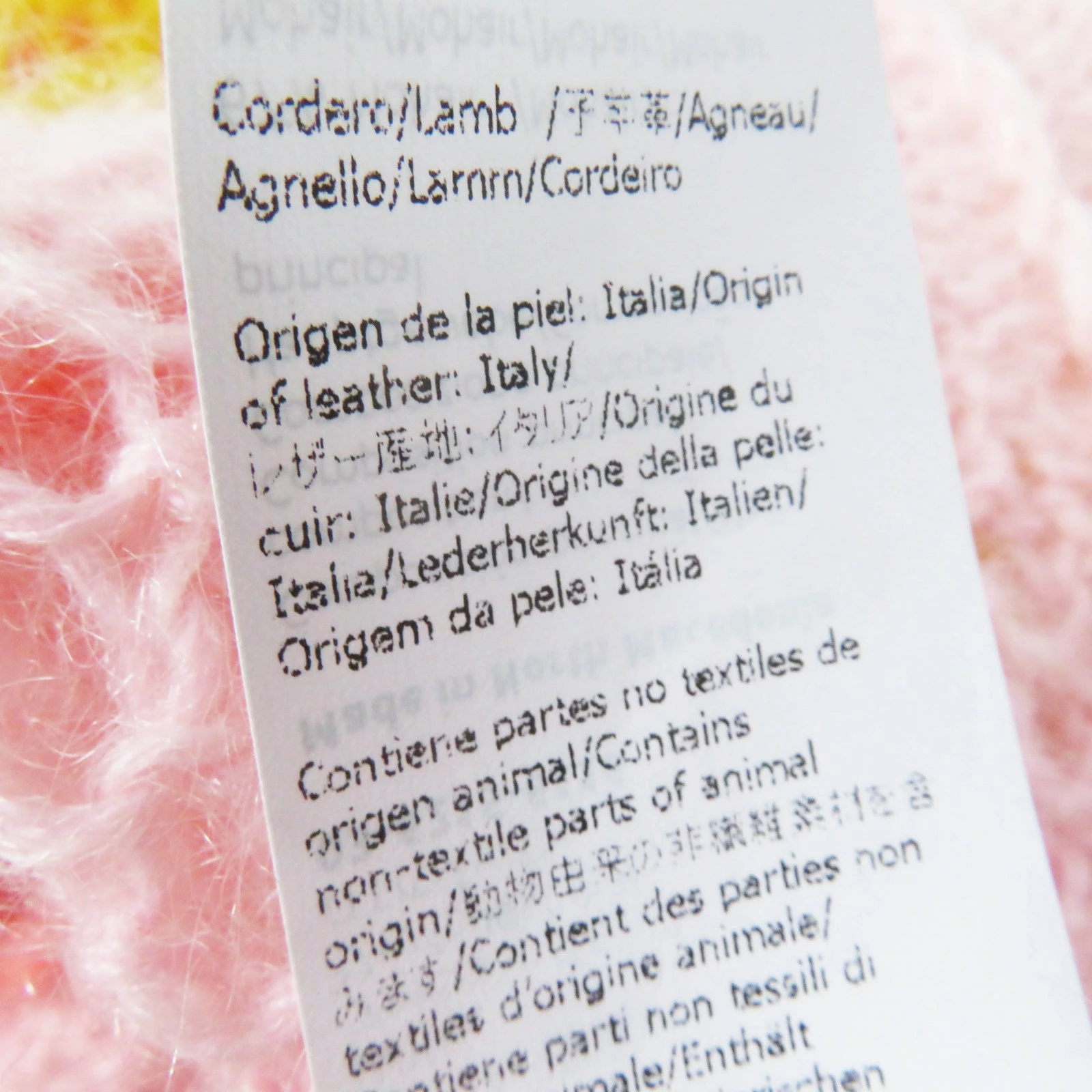 | 素材 (material) | 本体:モヘア67% :ポリアミド28% :ウール5% 皮革部分:子牛革 | ||||||||||||||||