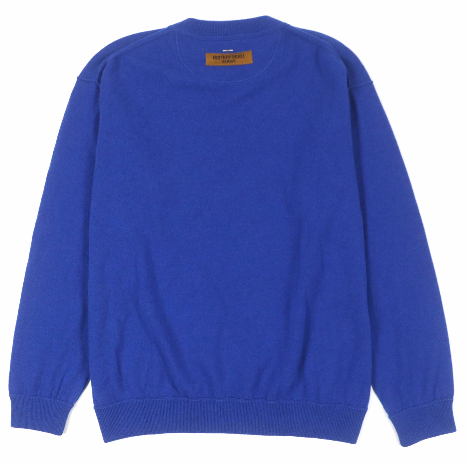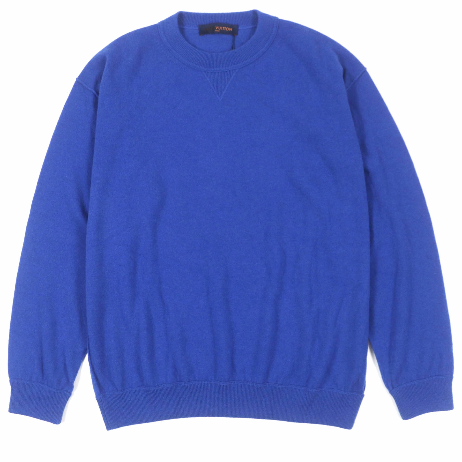 Unused Louis Vuitton 19AW Cashmere and Silk Inside-Out Crew Neck Knit Sweater with Logo Plate, Blue, XXL, Made in Italy, Authentic, Men's [Pre-owned]
